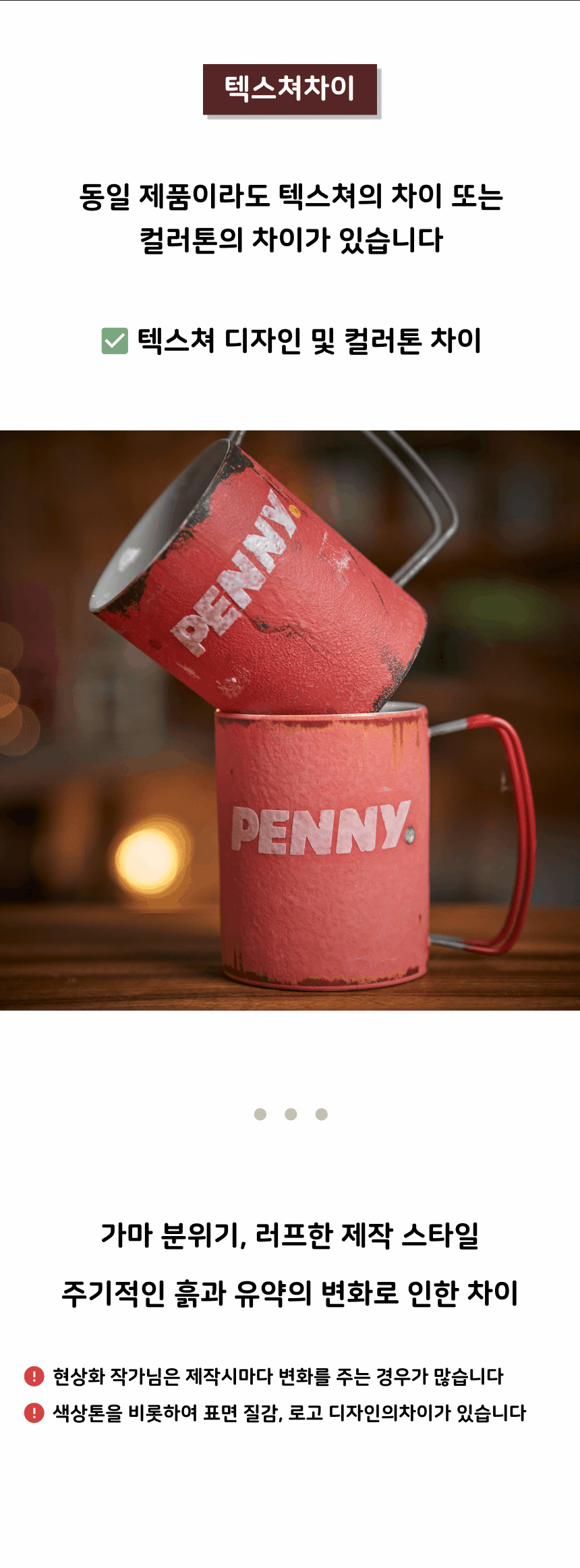 | 핸드메이드 도자기 그릇은 일반적인 공산품과 다릅니다. 가마의 분위기, 매번 달라지는 흙의 속성, 유약의 미세한 비율등 셀 수 없는 많은 요소로 인하여 끊임없이 요변이 일어나는 것이 핸드메이드 도자기 입니다. 상세 페이지와 다른 색상톤, 철분점과 돌기, 기포자국, 물레 형성자국, 가마에 닿는 바닥면의 흠집, 색배임 등등 핸드메이드 그릇 고유의 특징에 대하여 민감하신 분은 구매전 다시 한 번 고려하여 주시기 바랍니다. 온라인 쇼핑몰 특성상 사진이 본래의 제품과 100% 똑같이 나온다고 말씀드릴 순 없습니다. 항상 실제 제품과 같아 보이도록 최선을 다하고 있지만, 촬영 당시의 한 두개의 모델로 촬영된 제품과 꾸준히 생산되며 재입고되는 제품들은 요변에 따라 차이점이 날 수 밖에 없음을 이해해 주시기 바랍니다. 또한, 제품을 검색하는 모니터, 핸드폰의 종류에 따라서도 색상의 차이가 달라지니 이 점 참고하시기 바랍니다. |
