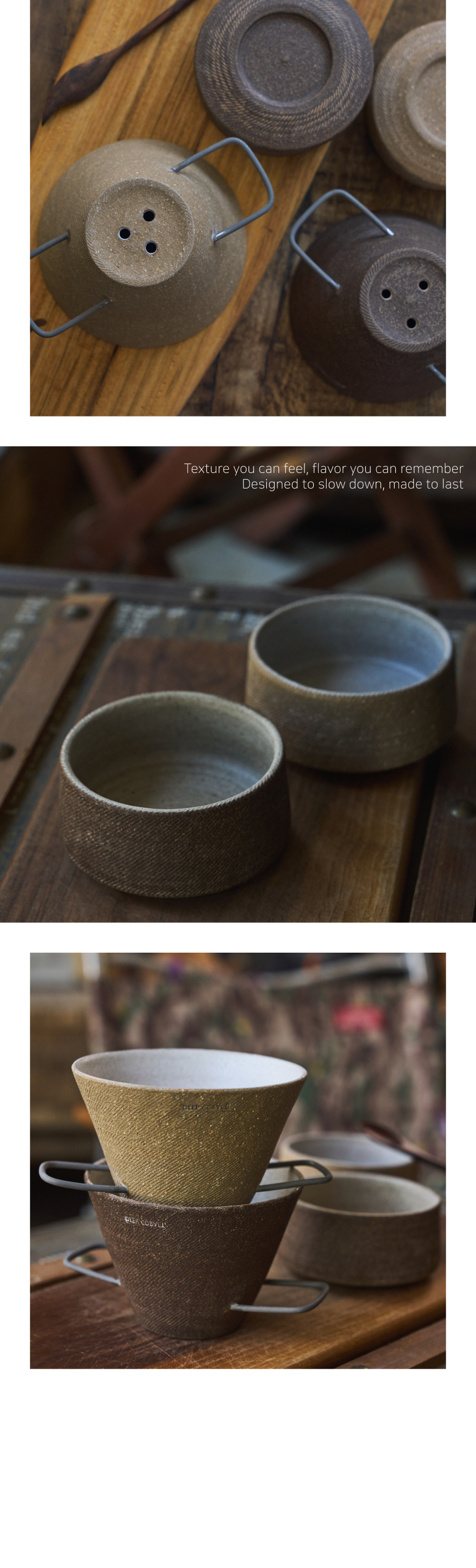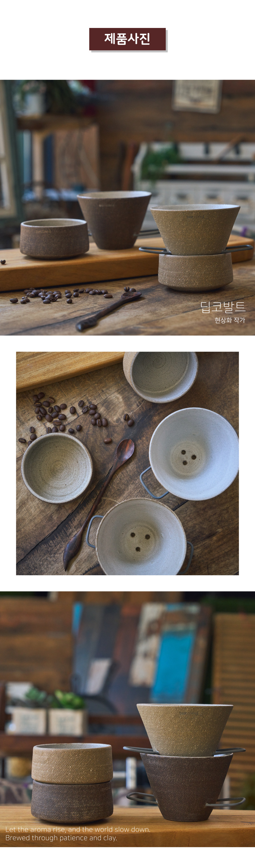 | 핸드메이드 도자기 그릇은 일반적인 공산품과 다릅니다. 가마의 분위기, 매번 달라지는 흙의 속성, 유약의 미세한 비율등 셀 수 없는 많은 요소로 인하여 끊임없이 요변이 일어나는 것이 핸드메이드 도자기 입니다. 상세 페이지와 다른 색상톤, 철분점과 돌기, 기포자국, 물레 형성자국, 가마에 닿는 바닥면의 흠집, 색배임 등등 핸드메이드 그릇 고유의 특징에 대하여 민감하신 분은 구매전 다시 한 번 고려하여 주시기 바랍니다. 온라인 쇼핑몰 특성상 사진이 본래의 제품과 100% 똑같이 나온다고 말씀드릴 순 없습니다. 항상 실제 제품과 같아 보이도록 최선을 다하고 있지만, 촬영 당시의 한 두개의 모델로 촬영된 제품과 꾸준히 생산되며 재입고되는 제품들은 요변에 따라 차이점이 날 수 밖에 없음을 이해해 주시기 바랍니다. 또한, 제품을 검색하는 모니터, 핸드폰의 종류에 따라서도 색상의 차이가 달라지니 이 점 참고하시기 바랍니다. |