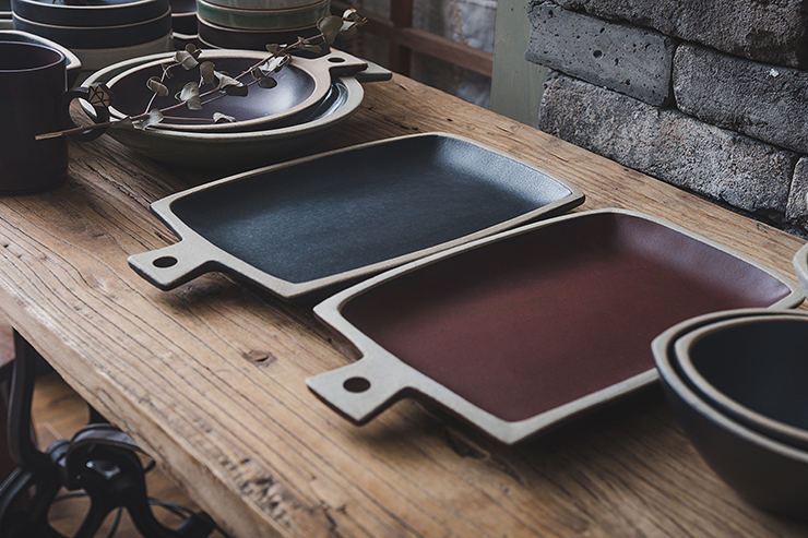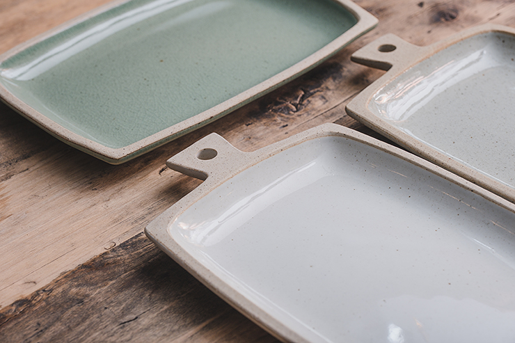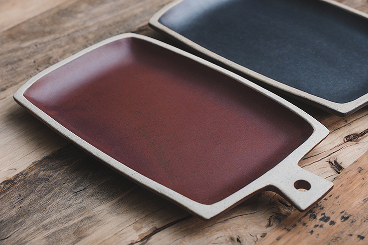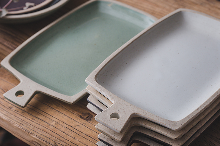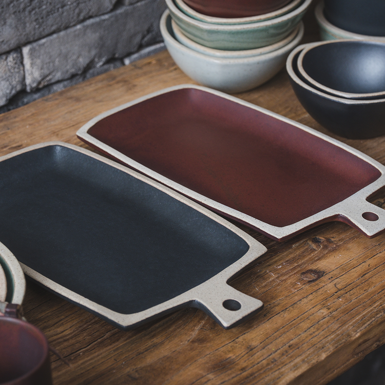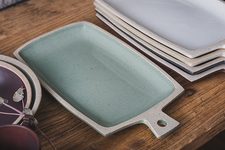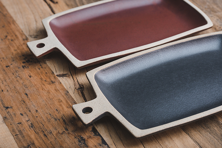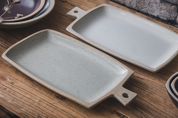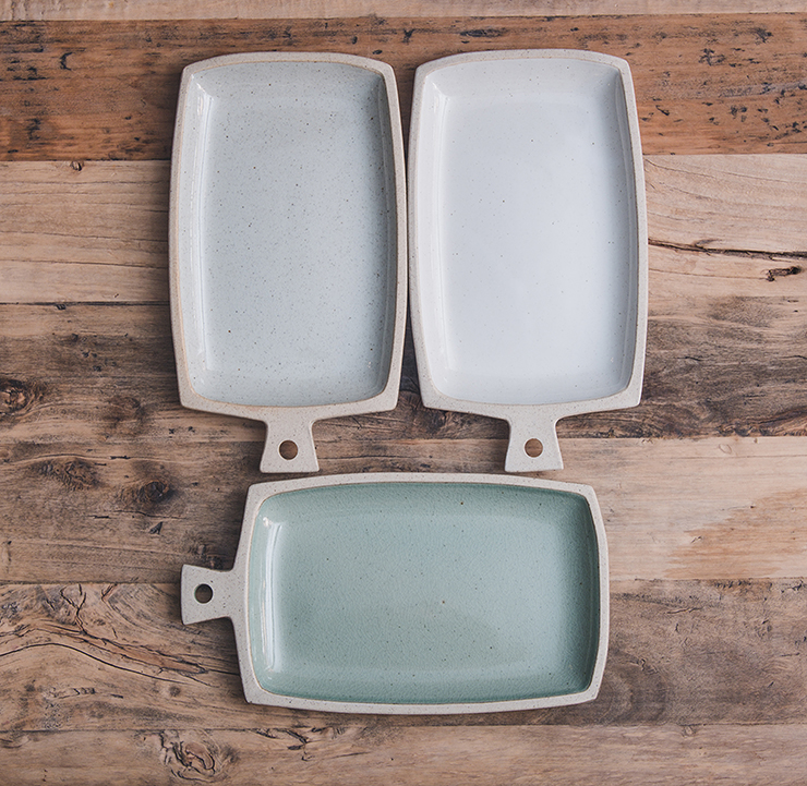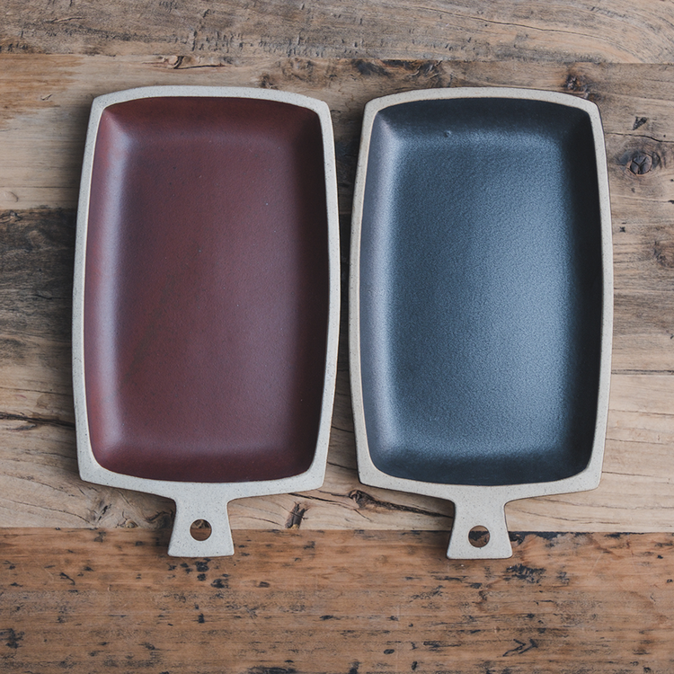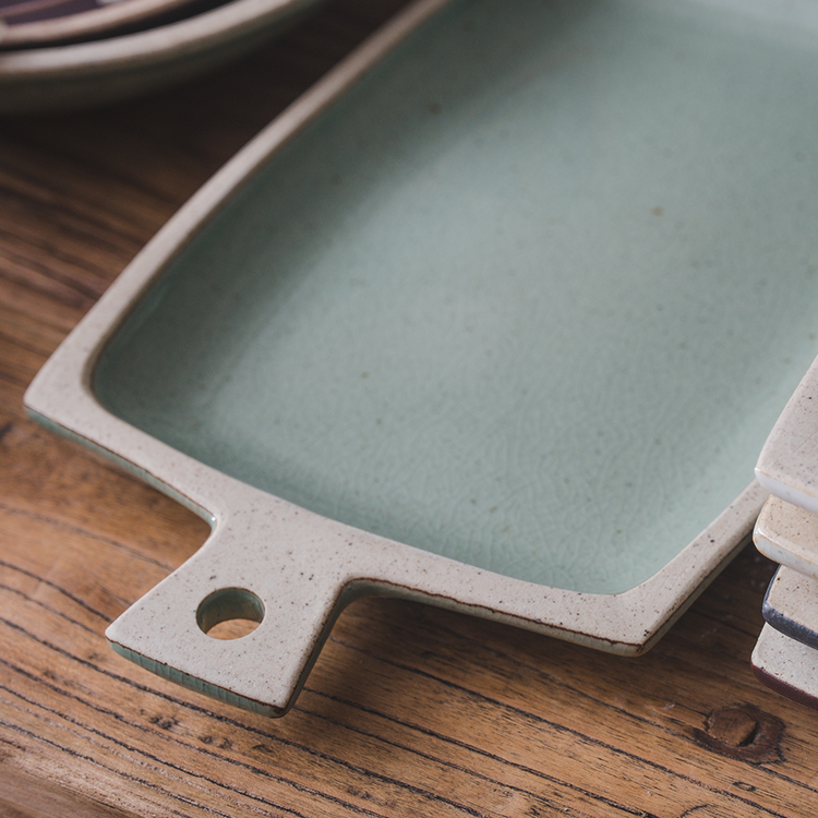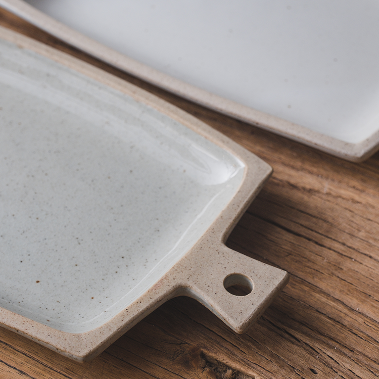 직사각 모양의 손잡이 포인트 접시