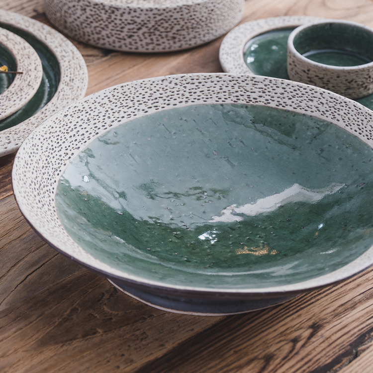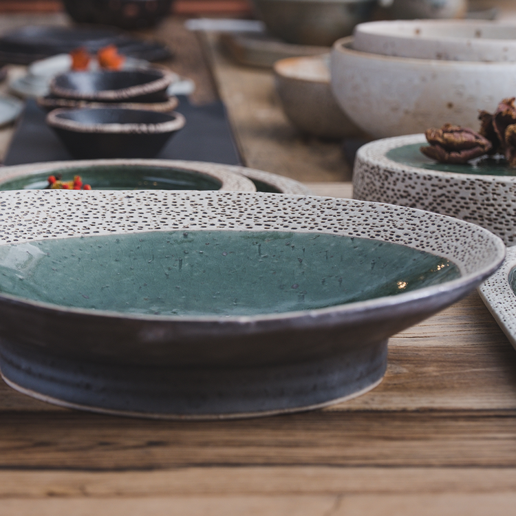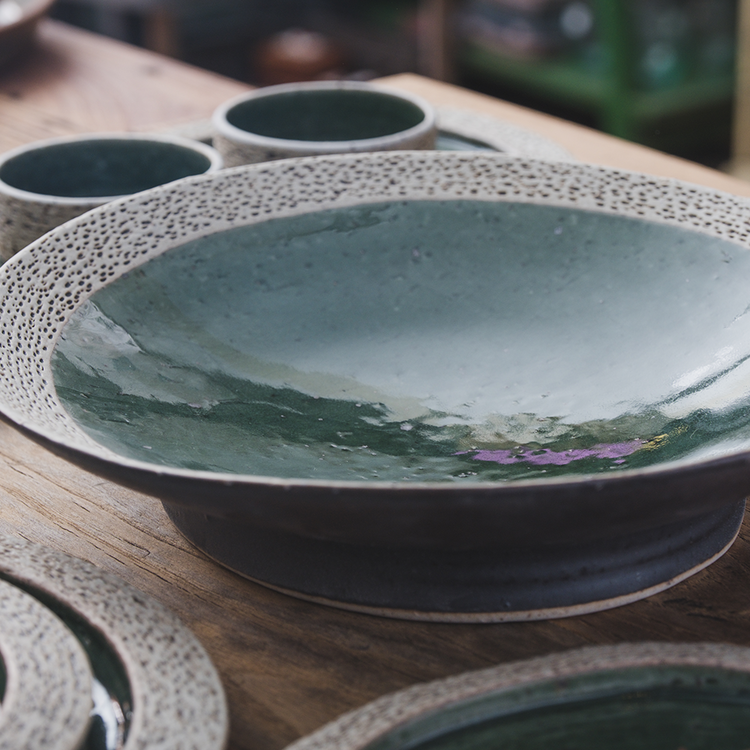 작은 돌기나 기포 자국, 유약이 흐른 자국, 성형 과정 중 변형된 부분 등 핸드메이드 도자기에 나타나는 자연스러운 현상이며, 하자가 아님을 알려드립니다.