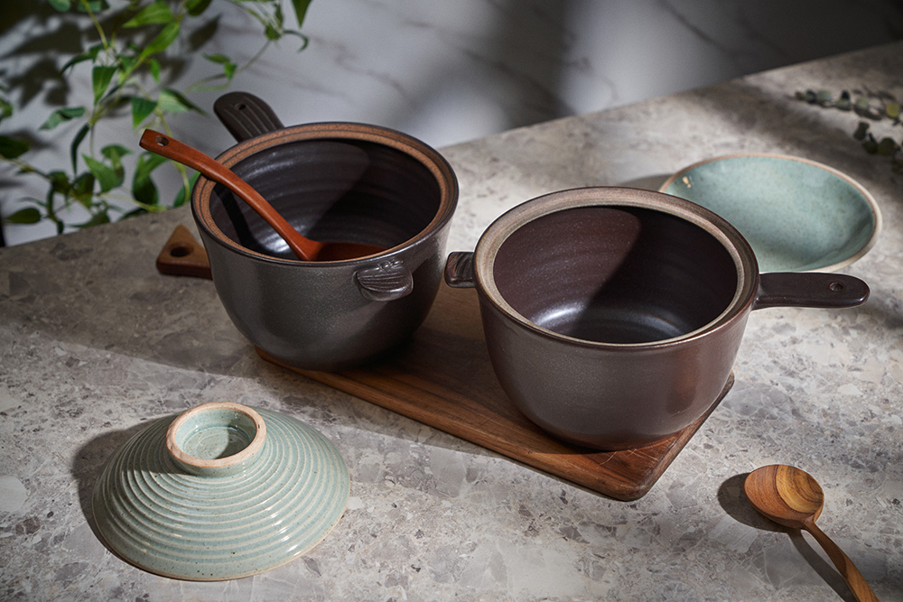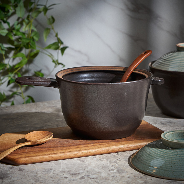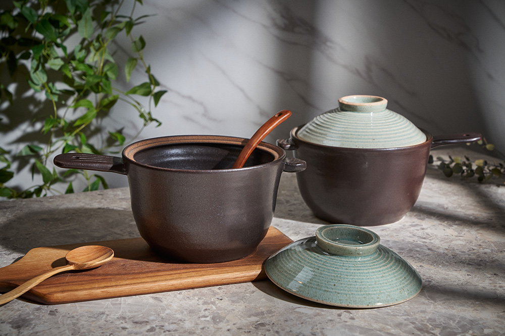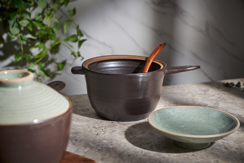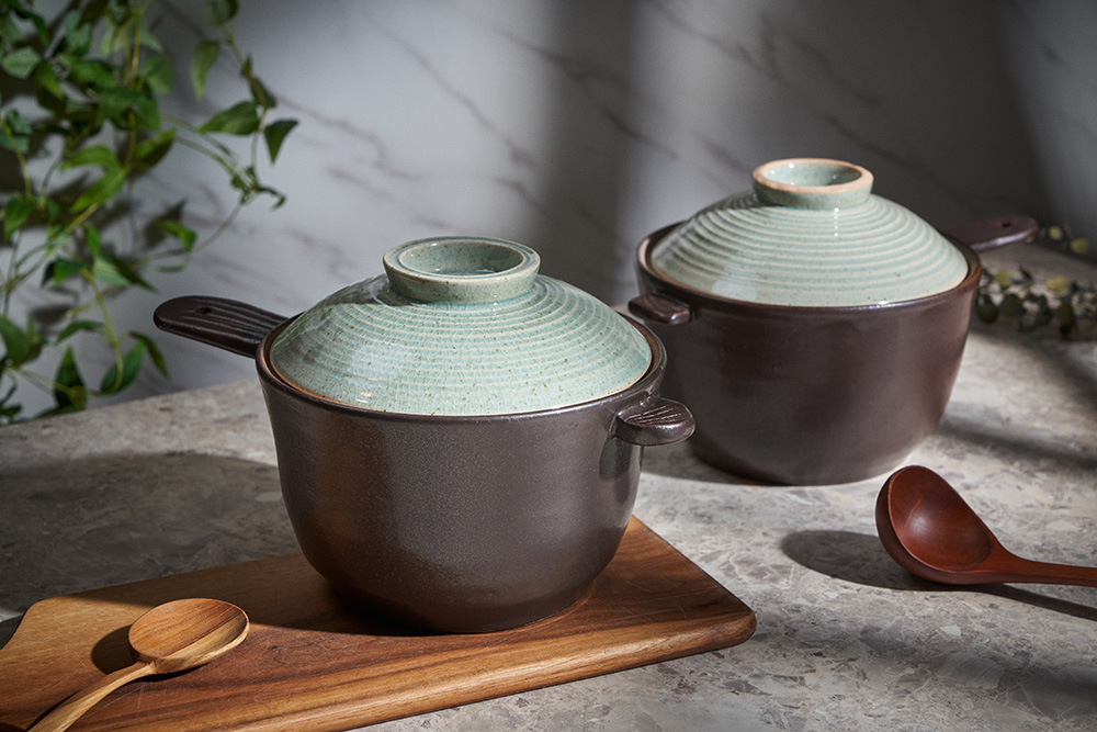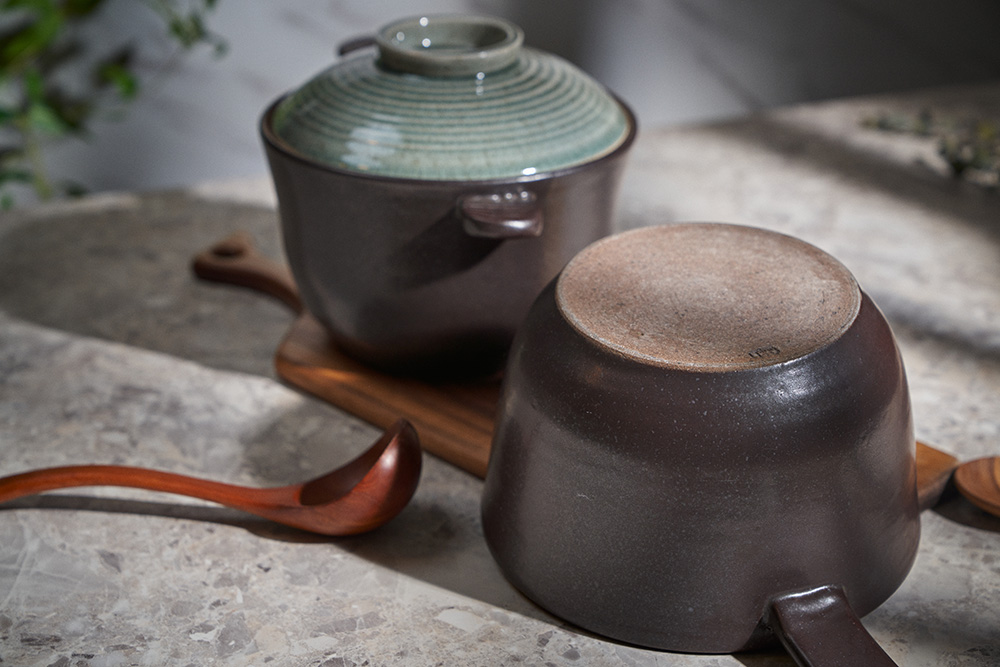 내열성이 가장 우수한 경남 산청지역의 내열 흙만을 고집하며, 자체개발한 자연유래 내열유약을 입혀 초벌부터 재벌까지 고온 소성(1250도)하여 내열성이 뛰어납니다.