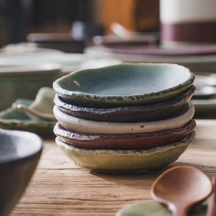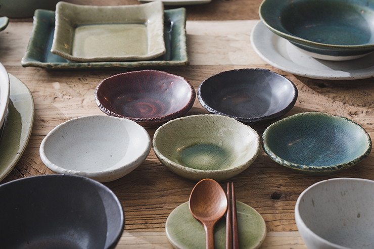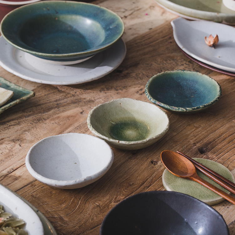 작은 돌기나 기포 자국, 유약이 흐른 자국, 성형 과정 중 변형된 부분 등 핸드메이드 도자기에 나타나는 자연스러운 현상이며, 하자가 아님을 알려드립니다.