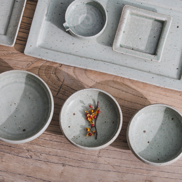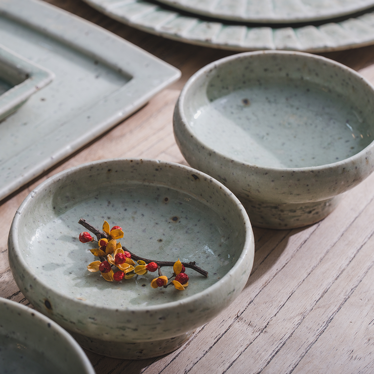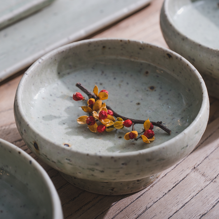 작은 돌기나 기포 자국, 유약이 흐른 자국, 성형 과정 중 변형된 부분 등 핸드메이드 도자기에 나타나는 자연스러운 현상이며, 하자가 아님을 알려드립니다.