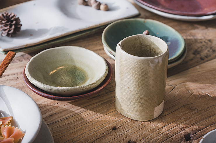작은 돌기나 기포 자국, 유약이 흐른 자국, 성형 과정 중 변형된 부분 등 핸드메이드 도자기에 나타나는 자연스러운 현상이며, 하자가 아님을 알려드립니다.