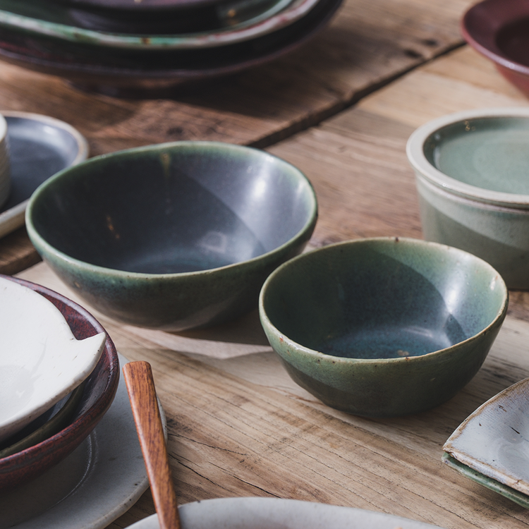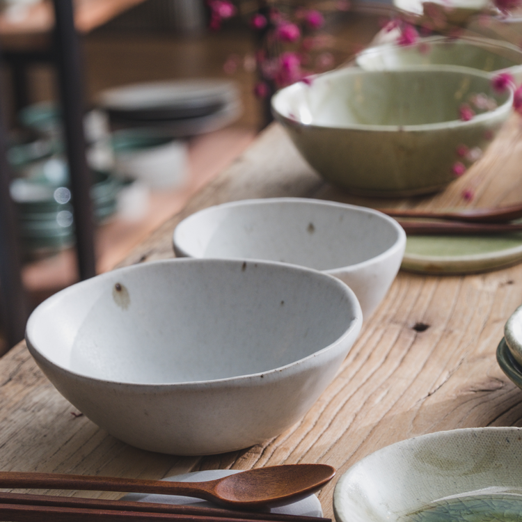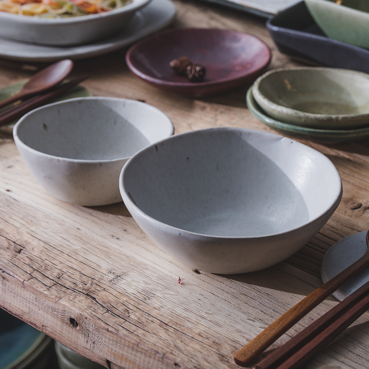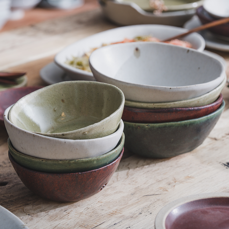 작은 돌기나 기포 자국, 유약이 흐른 자국, 성형 과정 중 변형된 부분 등 핸드메이드 도자기에 나타나는 자연스러운 현상이며, 하자가 아님을 알려드립니다.