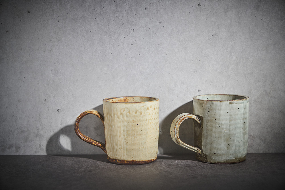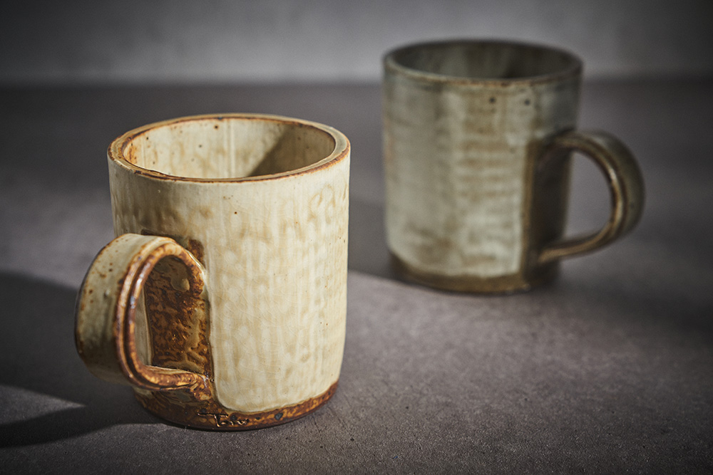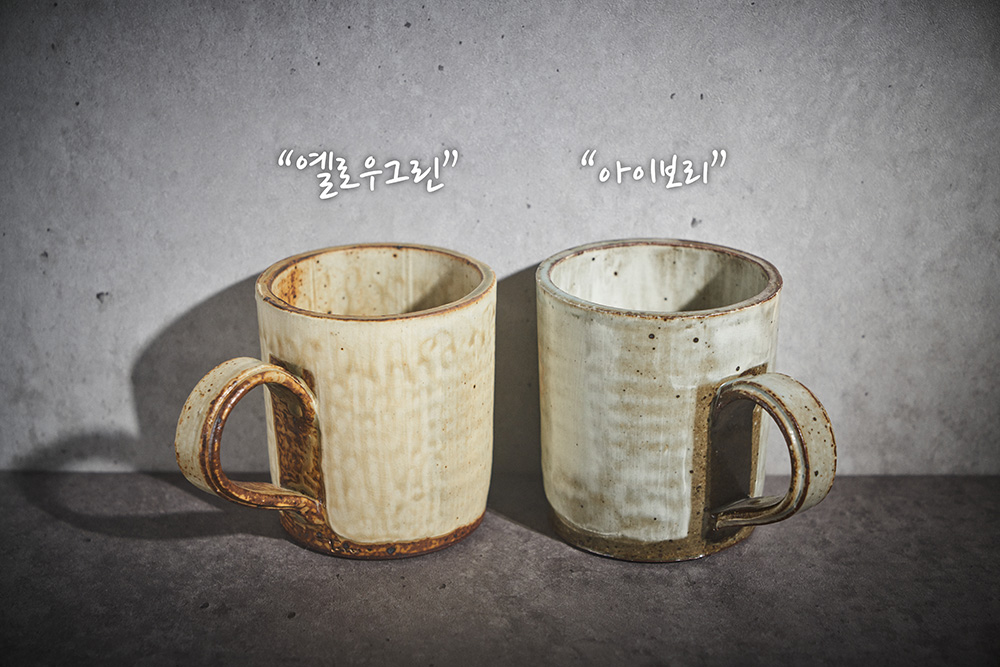 곽경태 작가 ( 토루 ) ' 귀얄 일자 머그 '귀얄 기법의 느낌있는 텍스쳐 표현 통형의 심플함과 손잡이의 디자인 포인트