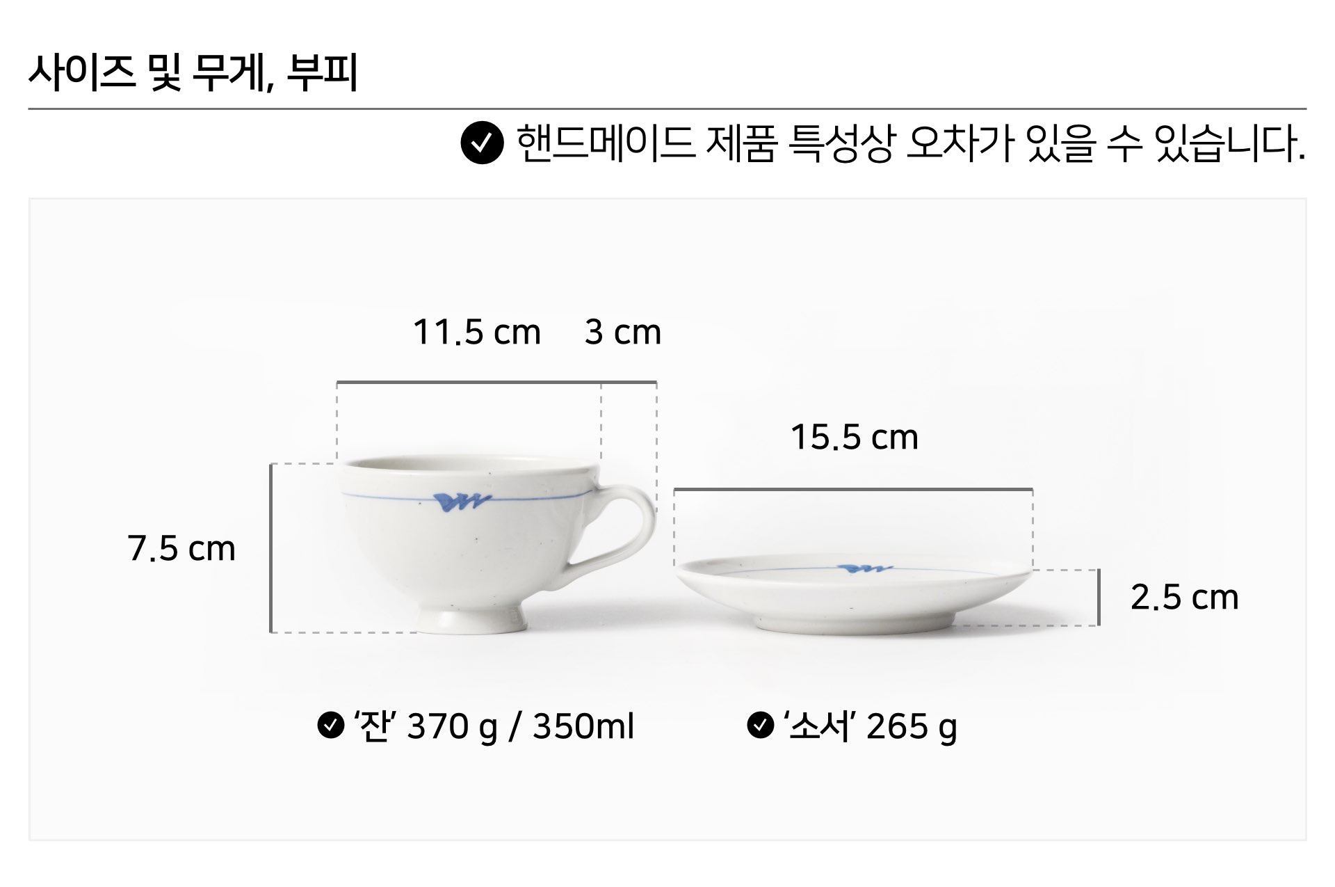 | 핸드메이드 도자기 그릇은 일반적인 공산품과 다릅니다. 가마의 분위기, 매번 달라지는 흙의 속성, 유약의 미세한 비율등 셀 수 없는 많은 요소로 인하여 끊임없이 요변이 일어나는 것이 핸드메이드 도자기 입니다. 상세 페이지와 다른 색상톤, 철분점과 돌기, 기포자국, 물레 형성자국, 가마에 닿는 바닥면의 흠집, 색배임 등등 핸드메이드 그릇 고유의 특징에 대하여 민감하신 분은 구매전 다시 한 번 고려하여 주시기 바랍니다. 온라인 쇼핑몰 특성상 사진이 본래의 제품과 100% 똑같이 나온다고 말씀드릴 순 없습니다. 항상 실제 제품과 같아 보이도록 최선을 다하고 있지만, 촬영 당시의 한 두개의 모델로 촬영된 제품과 꾸준히 생산되며 재입고되는 제품들은 요변에 따라 차이점이 날 수 밖에 없음을 이해해 주시기 바랍니다. 또한, 제품을 검색하는 모니터, 핸드폰의 종류에 따라서도 색상의 차이가 달라지니 이 점 참고하시기 바랍니다. |