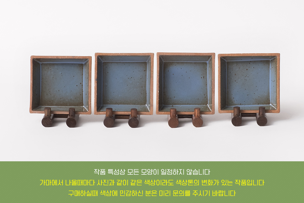 | 핸드메이드 도자기 그릇은 일반적인 공산품과 다릅니다. 가마의 분위기, 매번 달라지는 흙의 속성, 유약의 미세한 비율등 셀 수 없는 많은 요소로 인하여 끊임없이 요변이 일어나는 것이 핸드메이드 도자기 입니다. 상세 페이지와 다른 색상톤, 철분점과 돌기, 기포자국, 물레 형성자국, 가마에 닿는 바닥면의 흠집, 색배임 등등 핸드메이드 그릇 고유의 특징에 대하여 민감하신 분은 구매전 다시 한 번 고려하여 주시기 바랍니다. 온라인 쇼핑몰 특성상 사진이 본래의 제품과 100% 똑같이 나온다고 말씀드릴 순 없습니다. 항상 실제 제품과 같아 보이도록 최선을 다하고 있지만, 촬영 당시의 한 두개의 모델로 촬영된 제품과 꾸준히 생산되며 재입고되는 제품들은 요변에 따라 차이점이 날 수 밖에 없음을 이해해 주시기 바랍니다. 또한, 제품을 검색하는 모니터, 핸드폰의 종류에 따라서도 색상의 차이가 달라지니 이 점 참고하시기 바랍니다. |