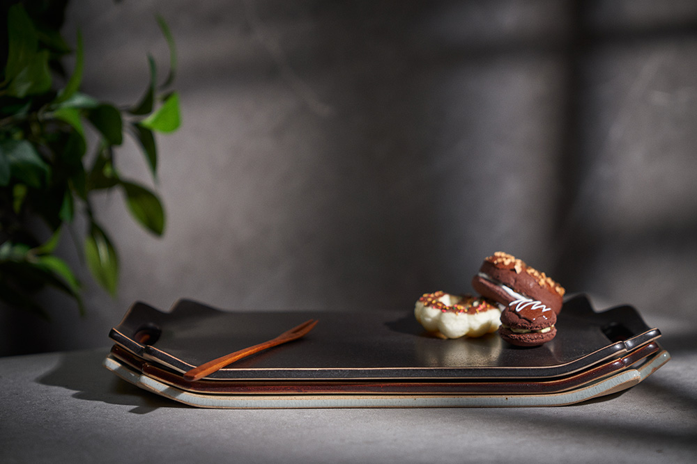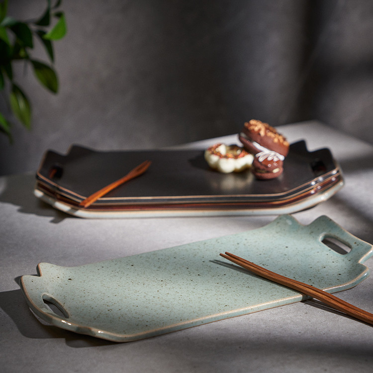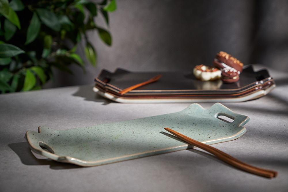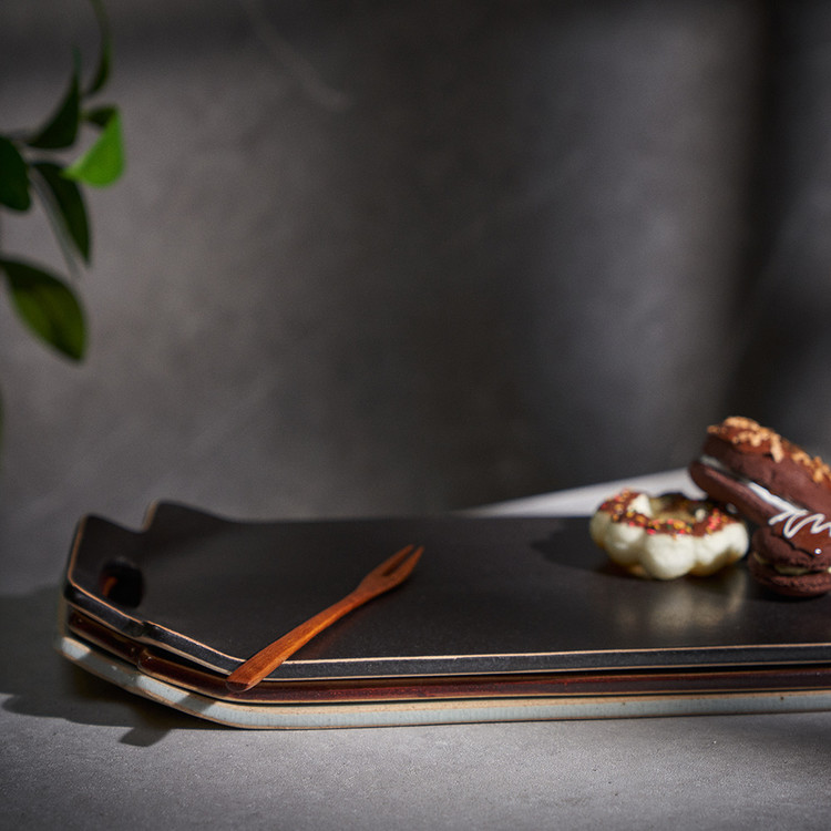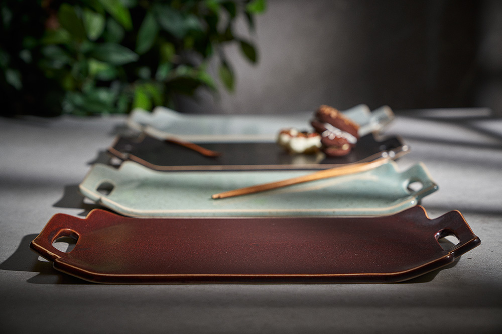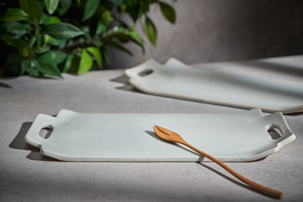 함 웅 작가 ( 토미153 ) ' 손잡이 트레이 '사선형 손잡이 포인트 직사각 형태의 매끈한 트레이 다과, 롤, 초밥 등 높은 활용도 |