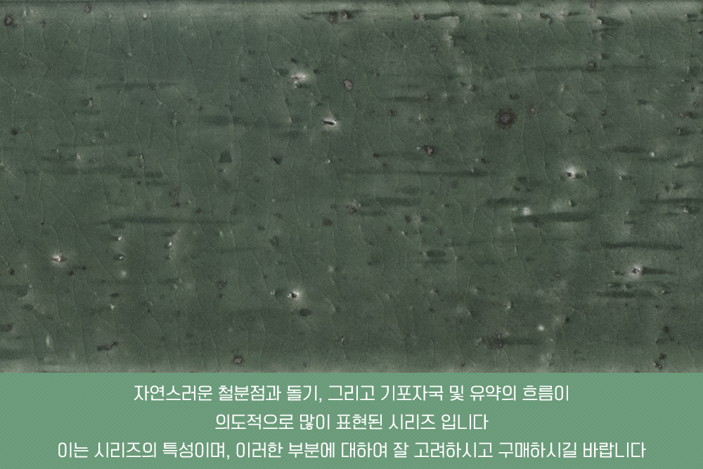 작은 돌기나 기포 자국, 유약이 흐른 자국, 성형 과정 중 변형된 부분 등 핸드메이드 도자기에 나타나는 자연스러운 현상이며, 하자가 아님을 알려드립니다.