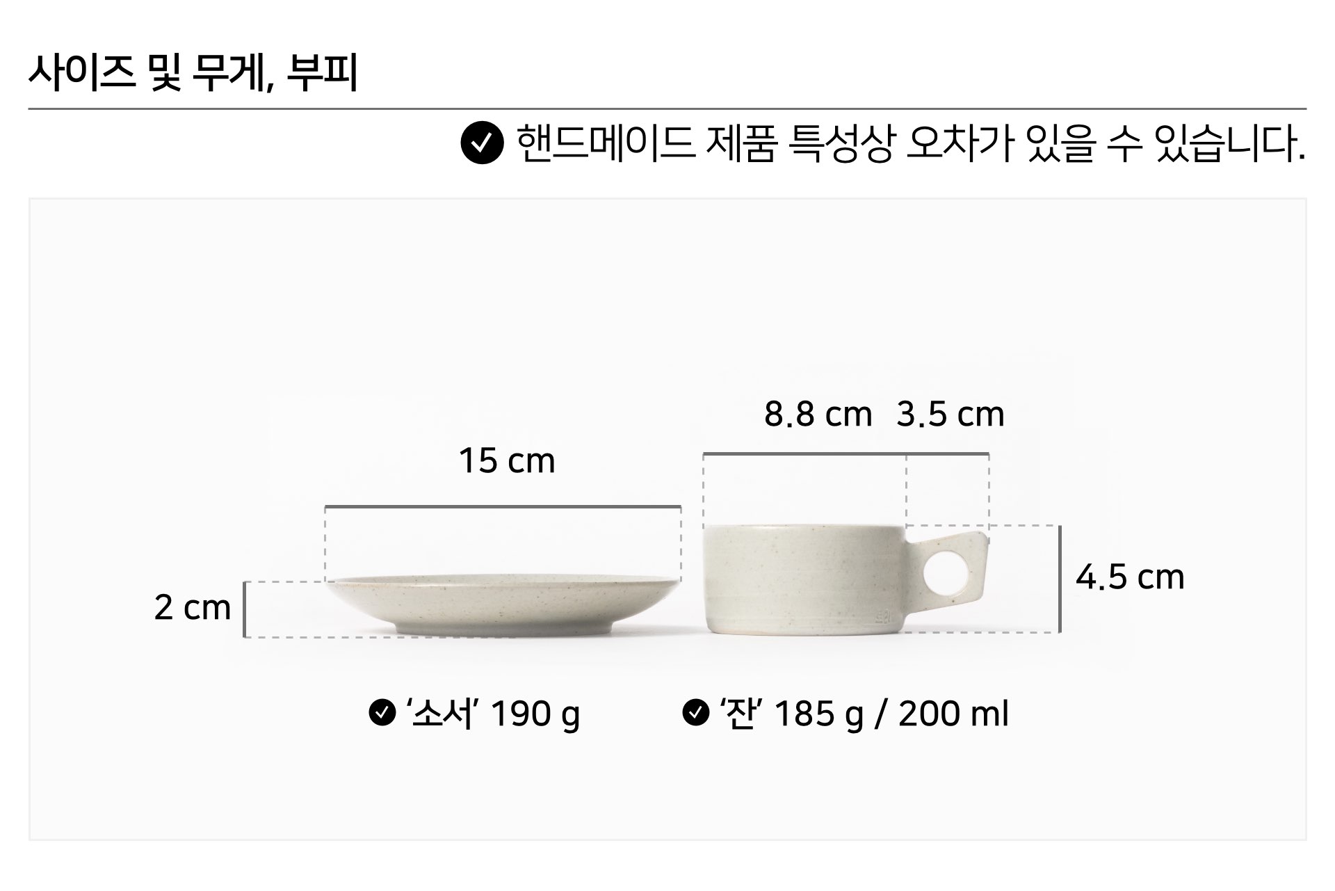| 핸드메이드 도자기 그릇은 일반적인 공산품과 다릅니다. 가마의 분위기, 매번 달라지는 흙의 속성, 유약의 미세한 비율등 셀 수 없는 많은 요소로 인하여 끊임없이 요변이 일어나는 것이 핸드메이드 도자기 입니다. 상세 페이지와 다른 색상톤, 철분점과 돌기, 기포자국, 물레 형성자국, 가마에 닿는 바닥면의 흠집, 색배임 등등 핸드메이드 그릇 고유의 특징에 대하여 민감하신 분은 구매전 다시 한 번 고려하여 주시기 바랍니다. 온라인 쇼핑몰 특성상 사진이 본래의 제품과 100% 똑같이 나온다고 말씀드릴 순 없습니다. 항상 실제 제품과 같아 보이도록 최선을 다하고 있지만, 촬영 당시의 한 두개의 모델로 촬영된 제품과 꾸준히 생산되며 재입고되는 제품들은 요변에 따라 차이점이 날 수 밖에 없음을 이해해 주시기 바랍니다. 또한, 제품을 검색하는 모니터, 핸드폰의 종류에 따라서도 색상의 차이가 달라지니 이 점 참고하시기 바랍니다. |