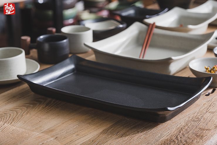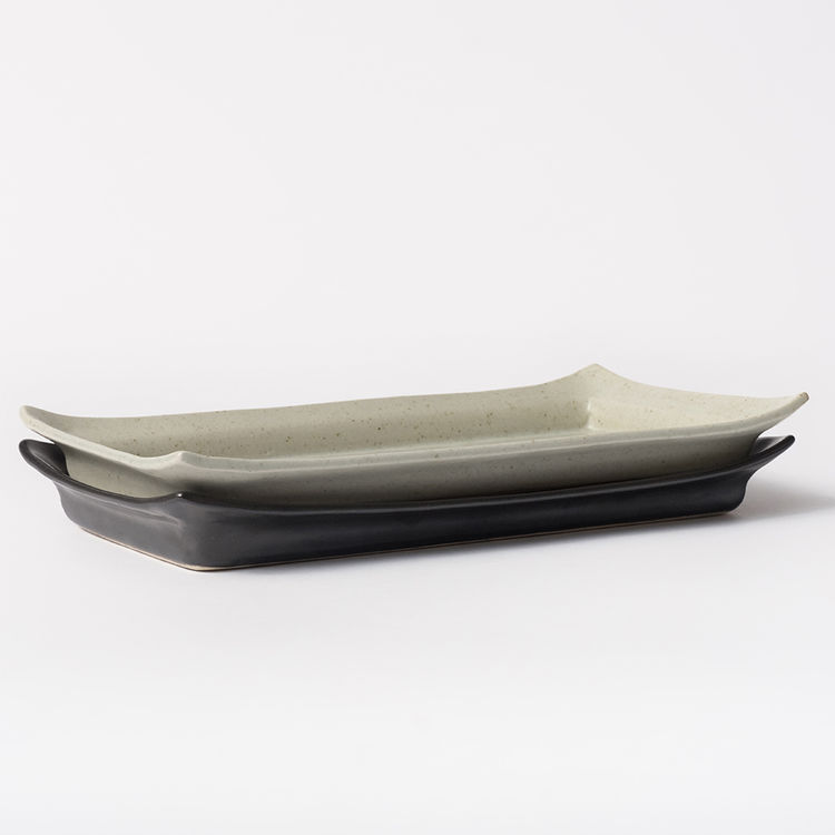 긴 직사각형의 자연스러운 형태의 날개 접시