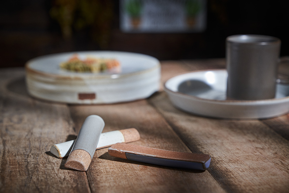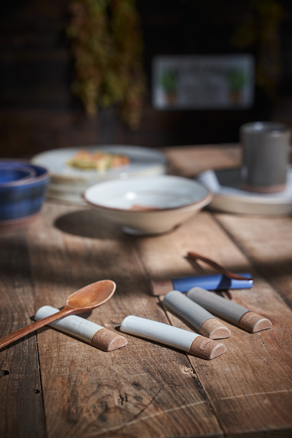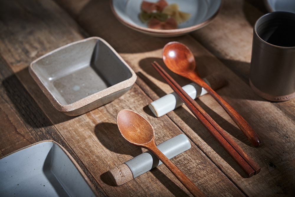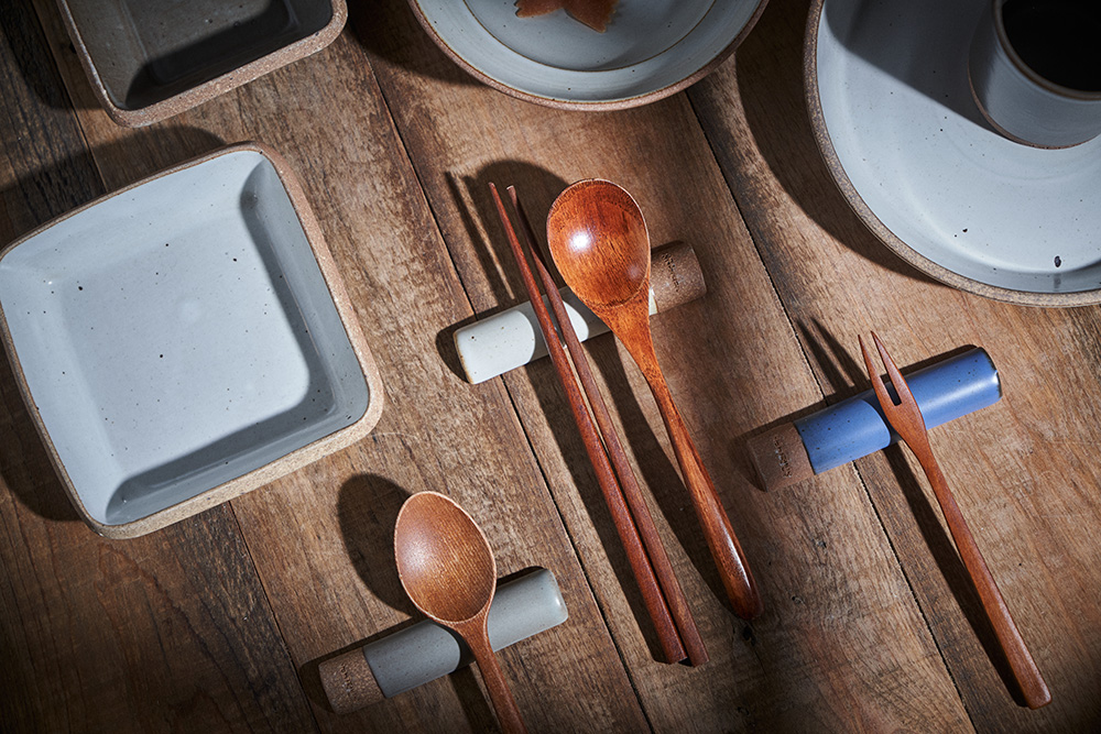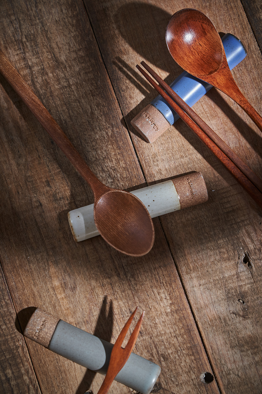 김영기 작가 ( 가마가텅빈날 ) ' 반달 수저받침 세트 '기존의 수저받침과 차별화된 반원 모양의 반달 디자인 넓은 형식의 수저받침에 비해 작은 접점으로 인한 편안한 사용감