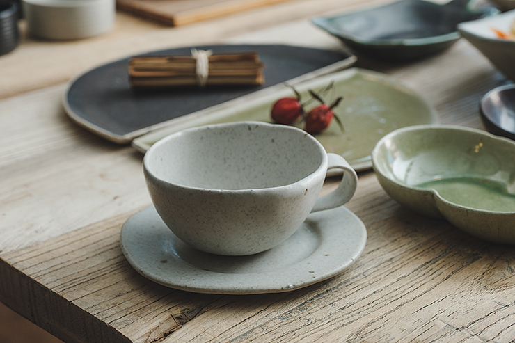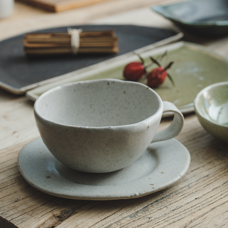 작은 돌기나 기포 자국, 유약이 흐른 자국, 성형 과정 중 변형된 부분 등 핸드메이드 도자기에 나타나는 자연스러운 현상이며, 하자가 아님을 알려드립니다.