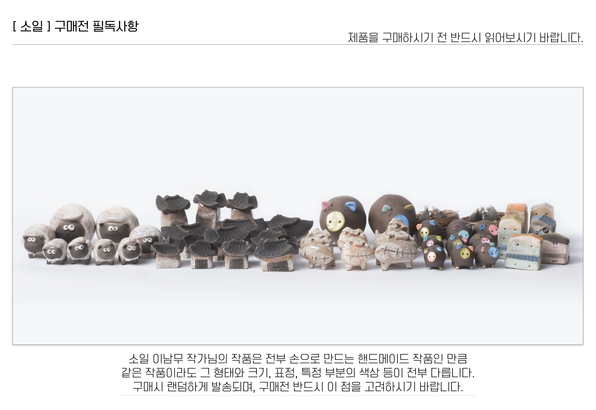 | 색상이 사진과 조금 다릅니다 도자기 제품은 가마에서 나올 때 마다 흙의 종류, 가마의 분위기, 유약 요변의 특성상 조금씩 색상톤의 변화가 있는 제품입니다. 색상에 많이 예민하신 분은 미리 문의하시면 발송가능한 제품의 사진을 찍어 게시판에 올려 드리니 참고 하시기 바랍니다. 철분점이 없는 걸 사고 싶어요 ( 또는 반대의 질문 ) 철분점은 핸드메이드 도자기 제품의 꽃으로서, 자연스러운 표현기법이자 현상입니다. 가마에 따라, 또는 한 가마의 제품이라도 그 수가 적고 많음이 불규칙적으로 표현되오니 이러한 부분에 예민하신 분은 미리 문의해 주시면 발송 가능한 제품의 사진을 찍어 안내 드리니 참고하시기 바랍니다. 구매하고 싶은데 품절이 되었어요! 혜화토는 재고가 부족하지 않도록 항상 노력하고 있습니다. 하지만, 제품마다 제작 방법 및 기법, 유약 작업 등이 다르며 가마 상황에 따라 다양한 변수가 발생하므로 재고의 수량이 원활히 수급되지 않는 경우가 있습니다. 보통 품절되기 전 다음 수량을 입고하기 위해 노력하지만, 때로는 한 가마 전체를 버려야 하는 경우가 생기기도 하는 수작업의 영역이기에 재입고 일정이 늦어지는 경우가 비일비재 합니다. 재입고 일정은 특성상 정확한 일정이 정해지지 않지만, 입고시 알람 문자는 발송해 드리고 있으니 원하시는 재품의 재입고시 알람문자를 받고 싶으시면 문의로 성함 및 연락처, 원하는 제품명을 알려 주시면 문자를 발송해 드립니다. 또한, 네이버톡톡으로도 안내를 받을 수 있으니 톡으로 남겨 주셔도 됩니다. 대량 구매진행은 어떻게 해야 하나요? 혜화토는 여러 작가님과의 계약을 통하여 작품을 판매하는 편집샵입니다. 따라서, 대량 구매의 최소 금액 기준은 작가 및 브랜드별로 상이하며, 사업자 등록증이 없는 경우는 별도 대량구매 안내를 해드릴 수 없습니다. 대량구매 게시판에 포멧에 맞게 문의서를 작성해 주시면 안내해 드리도록 하겠습니다. |