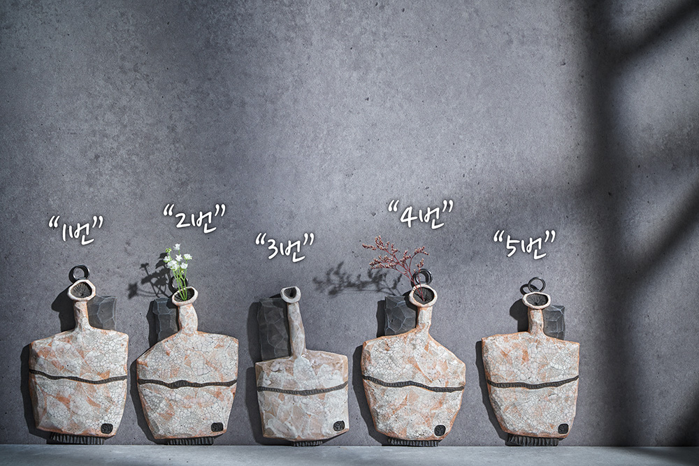 이남무 작가 ( 소일 ) ' 심플 라쿠 벽걸이 화병 '라쿠 기법의 심플한 도자기 오브제 부담없는 은은한 미를 살린 디자인