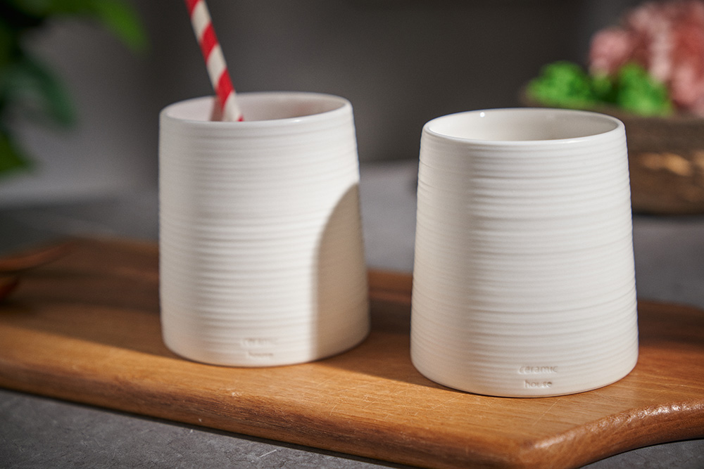 조명식 작가 ( 세라믹하우스 ) ' 나이테 물컵 '심플한 사선 디자인, 나이테 텍스쳐 포인트 고급스럽고 화사한 화이트 톤