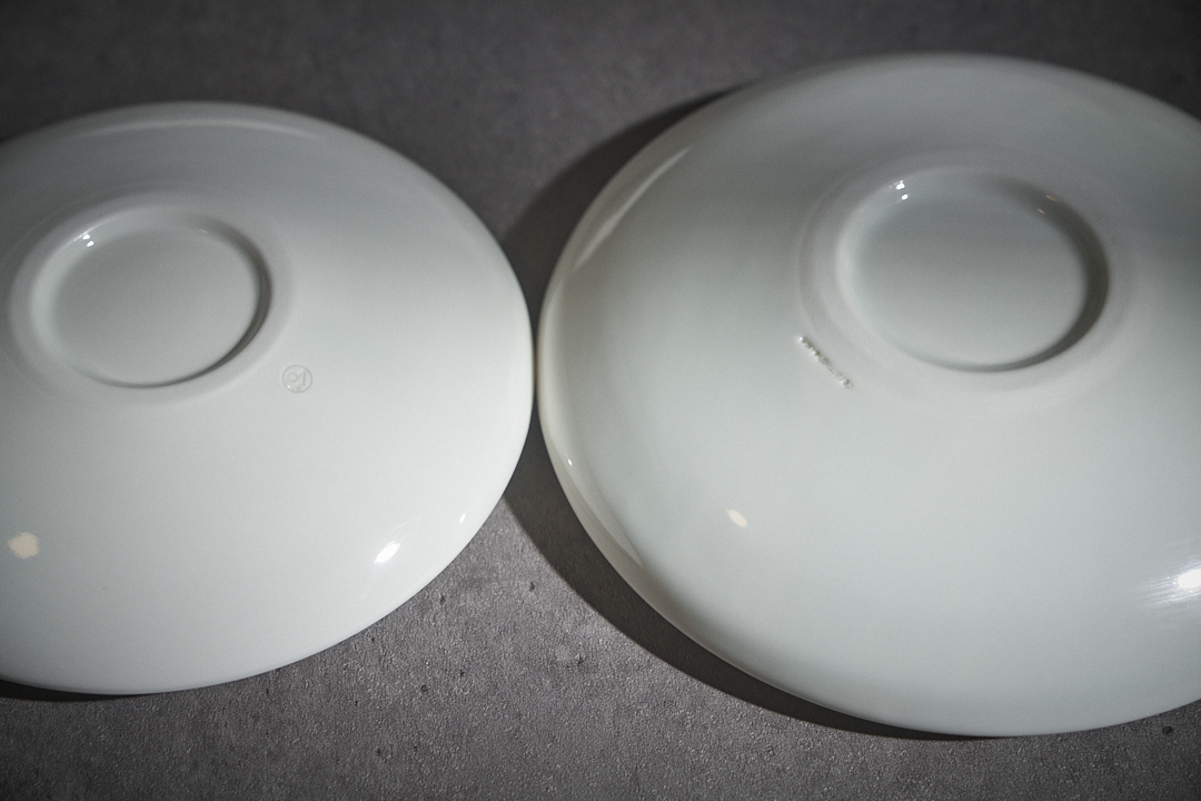 겉면 텍스쳐, 크기 및 형태 차이 사진과 같이 동일 제품이라도 크기 및 높낮이, 형태 차이가 있습니다. 도자기 그릇은 같은 크기와 형태로 만들어 초벌 작업을 해도, 가마에서 구워질때의 위치에 따라 다양한 변수가 생기게 됩니다. 이러한 변화와 더불어 수축과 팽창을 반복하며 최종 형태가 나오기 때문에, 크기 및 형태의 오차범위가 생기게 됩니다. 또한 겨울나무 등 패턴 작업이 들어가는 제품은 손으로 모두 만드는 과정에서 모양과 형태의 차이가 있습니다. |