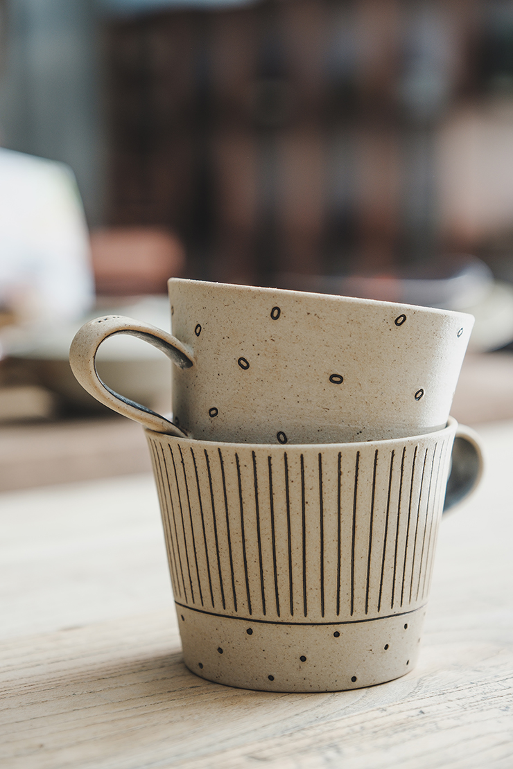 작은 돌기나 기포 자국, 유약이 흐른 자국, 성형 과정 중 변형된 부분 등 핸드메이드 도자기에 나타나는 자연스러운 현상이며, 하자가 아님을 알려드립니다.