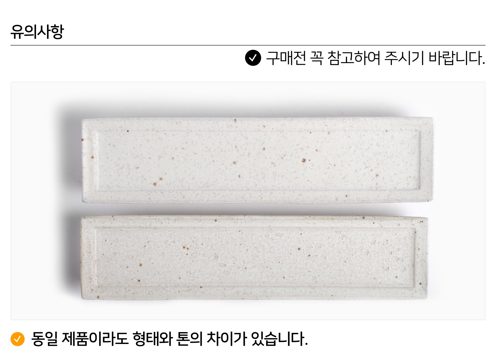 ✅ 2022년 후반기 이천도자기 흙 교체로 인하여, 자작 시리즈의 색배임 현상이 이전보다 조금 더 있을 수 있습니다. 보통 세척 후 건조시 배인 색이 어느정도 날아가지만, 도자기 고유의 색배임 현상에 대하여 민감하신 분은 구매를 추천드리지 않습니다. 이러한 현상으로 인한 제품 교환 및 환불은 불가합니다.