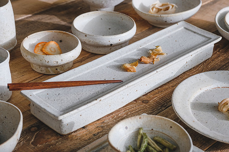 긴 사이즈, 높은 굽, 무게감이 살아 있는 직사각 굽접시