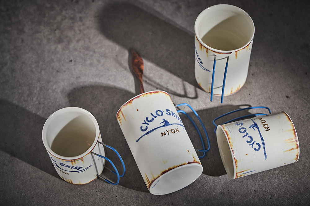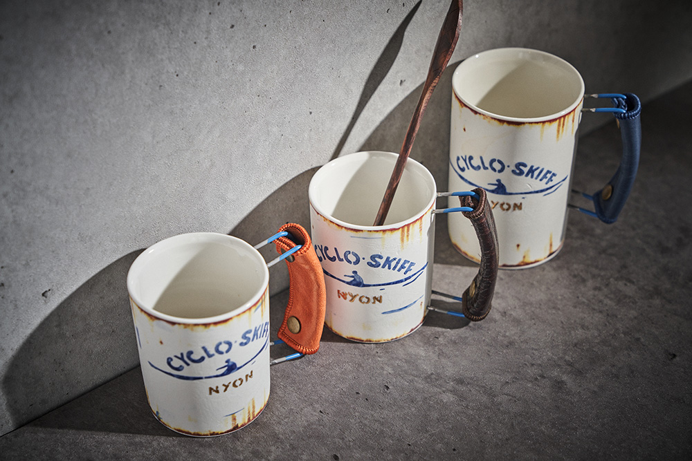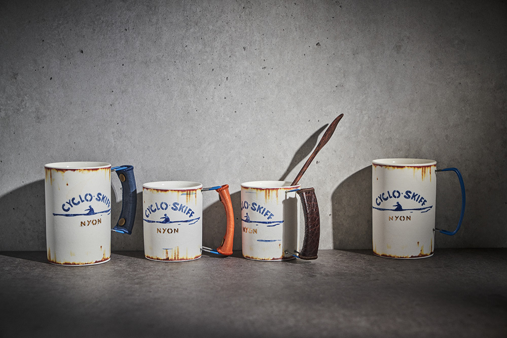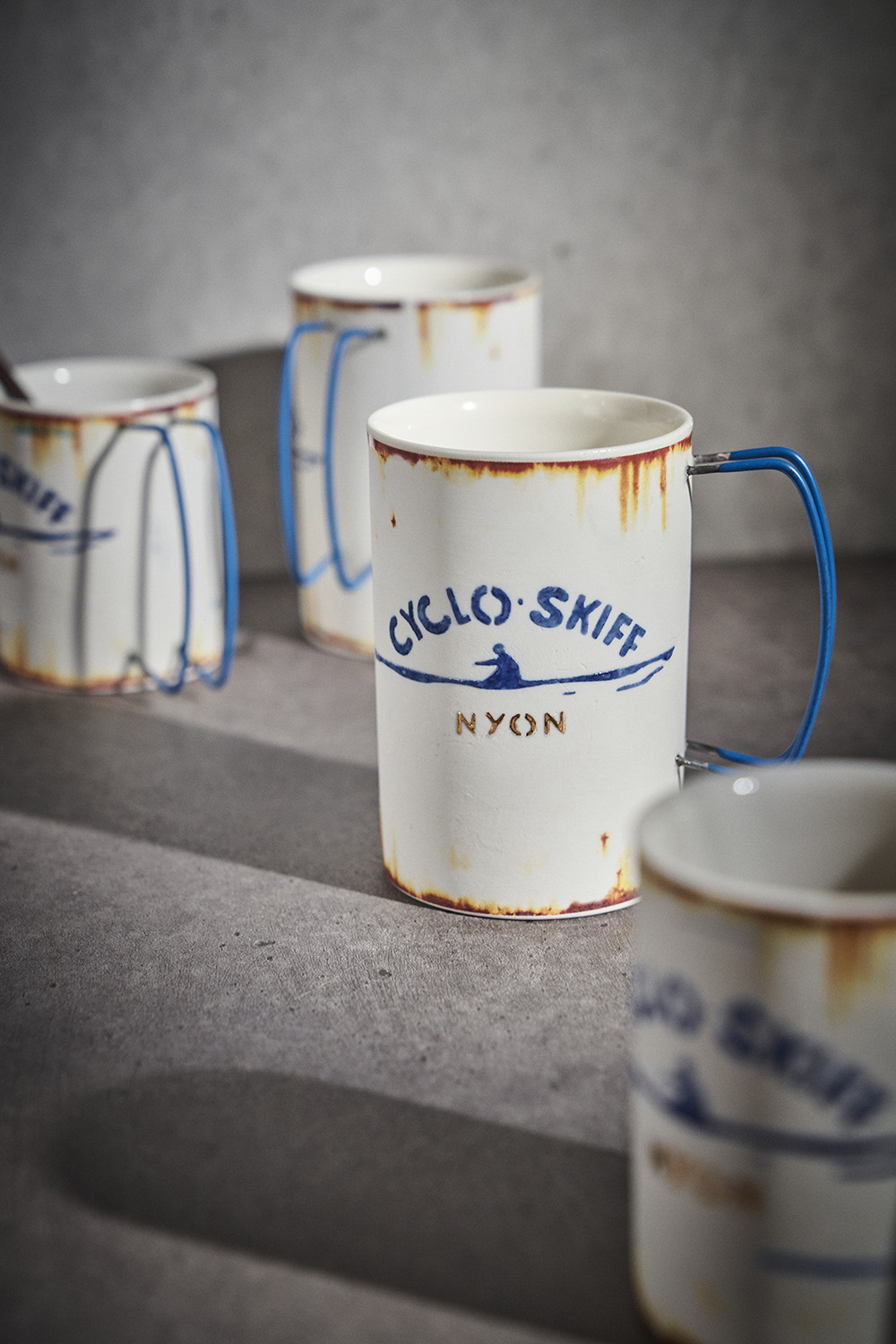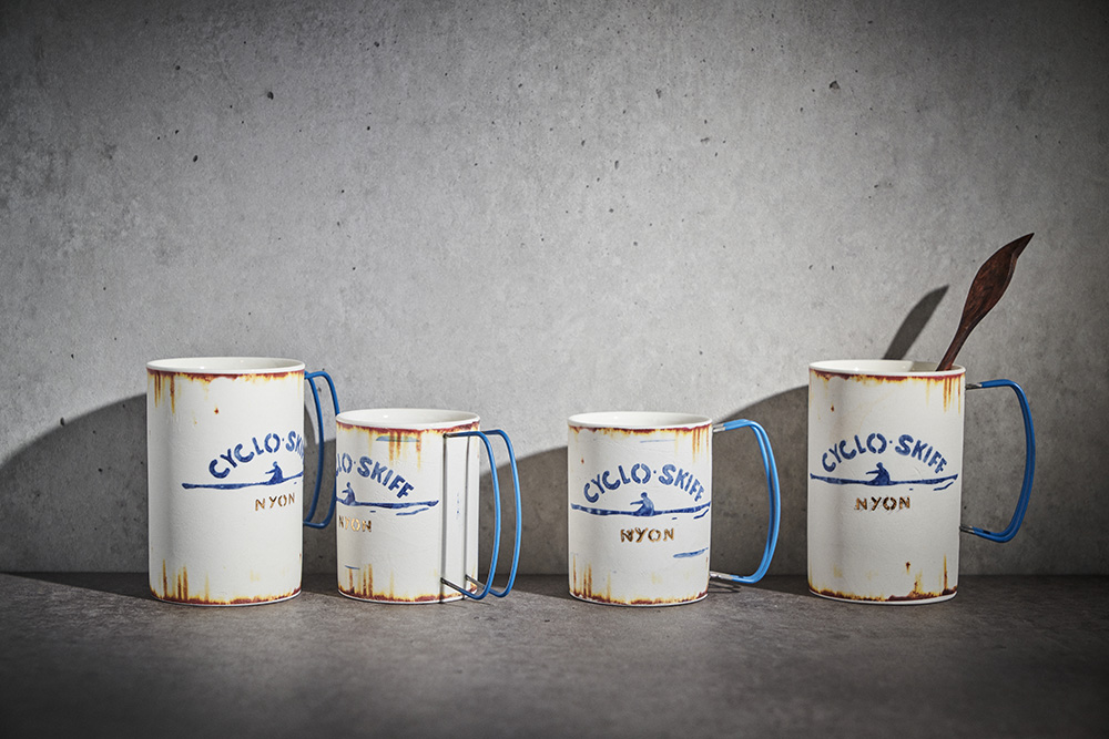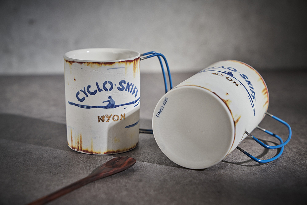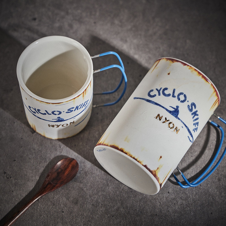 현상화 작가 ( 딥코발트 ) ' CYCLO SKIFF (white) '빈티지한 느낌의 레트로 머그 디자인 산뜻한 화이트 & 블루
