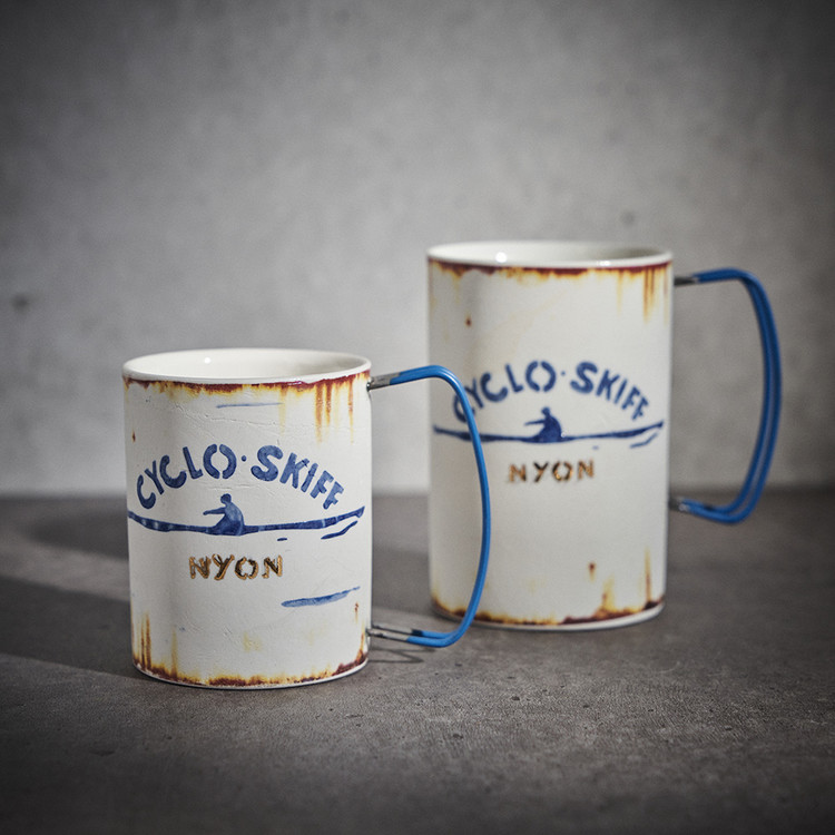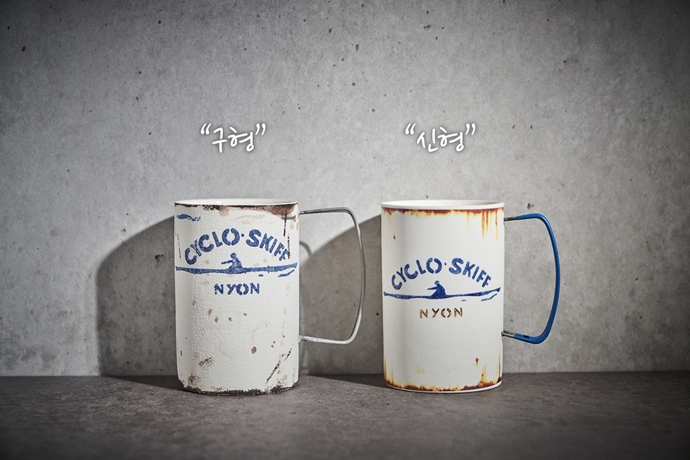 현상화 작가 ( 딥코발트 ) ' CYCLO SKIFF (white) '빈티지한 느낌의 레트로 머그 디자인 산뜻한 화이트 & 블루 취향 및 용도에 따른 사이즈 선택커피, 음료, 물컵 등 다양한 활용 |