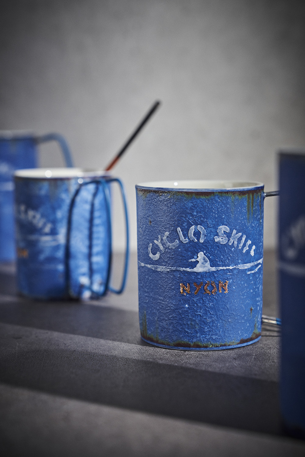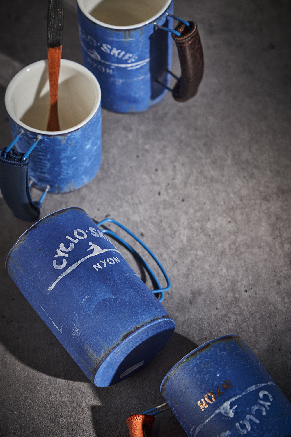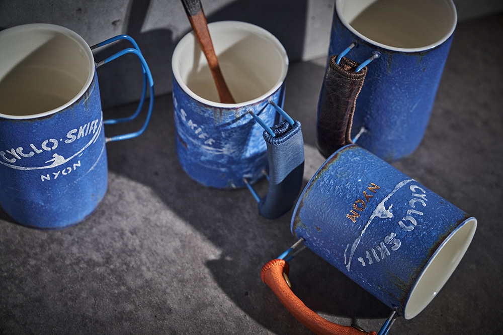 현상화 작가 ( 딥코발트 ) ' CYCLO SKIFF (blue) '빈티지한 느낌의 레트로 머그 디자인 차분한 블루톤의 감각적인 텍스쳐