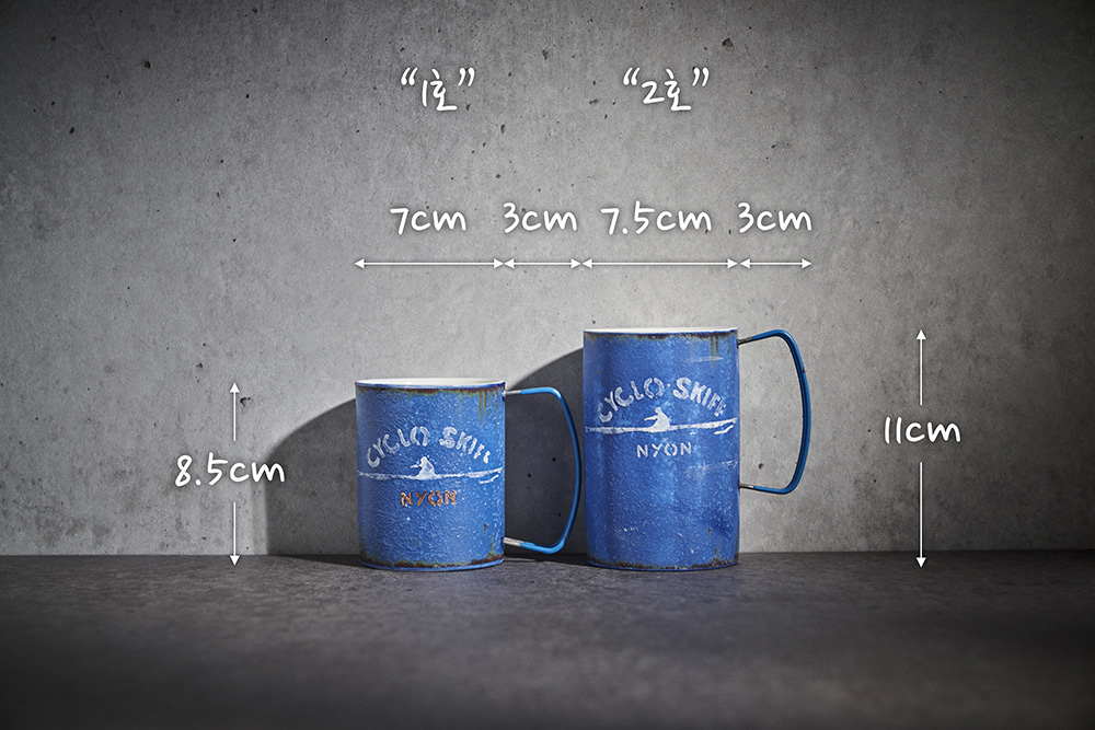 1호 : 7 x 8.5(높이) x 3(손잡이) / 200g / 220ml2호 : 7.5 x 11(높이) x 3(손잡이) / 270g / 350ml딥코발트 제품은 작가님의 의도에 따라 디자인이 자주 변경되는 편입니다. CYCLO SKIFF (blue)는 구형과 신형의 색상톤의 차이가 크고 NYON 로고가 1호 사이즈만 색상이 다르니 구매시 유의하여 주시기 바랍니다. 사이즈 단위 : cm | ||