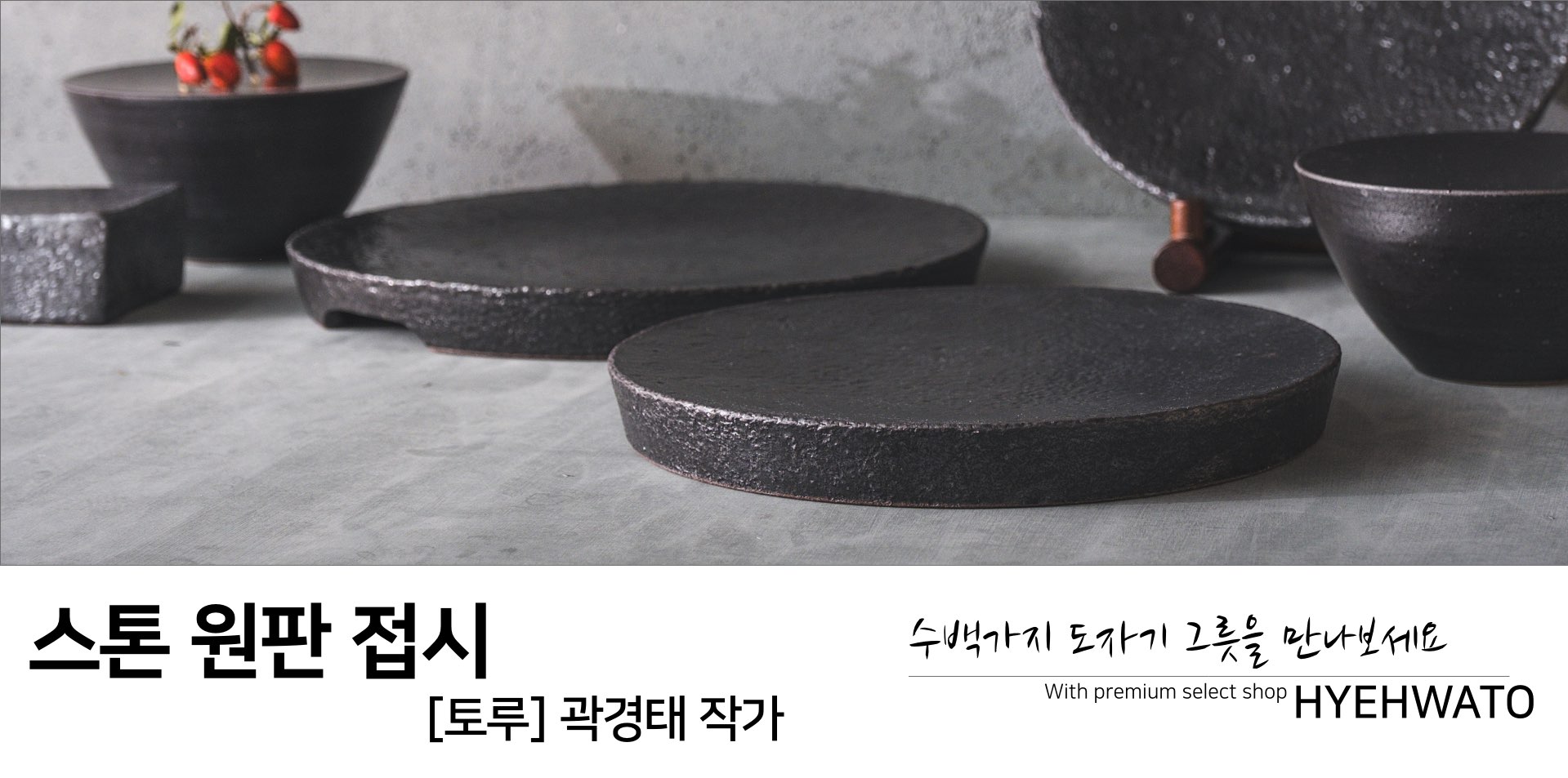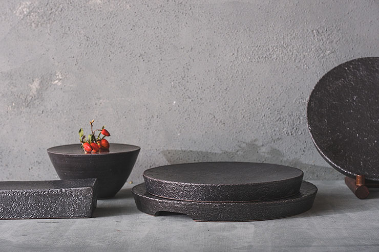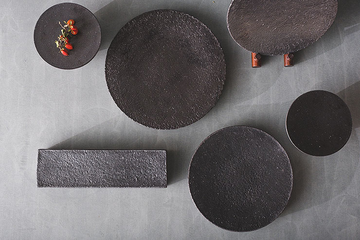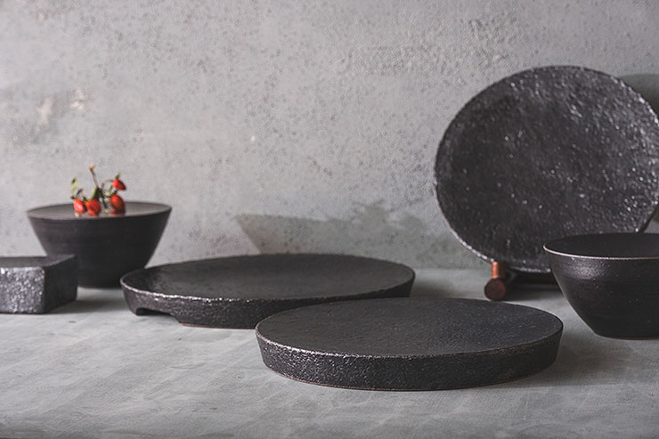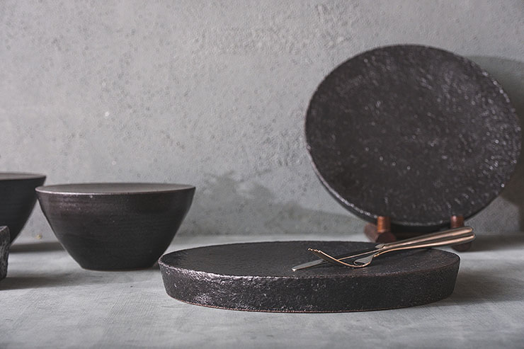 세련된 흑유 라인업의 원굽 접시 디자인