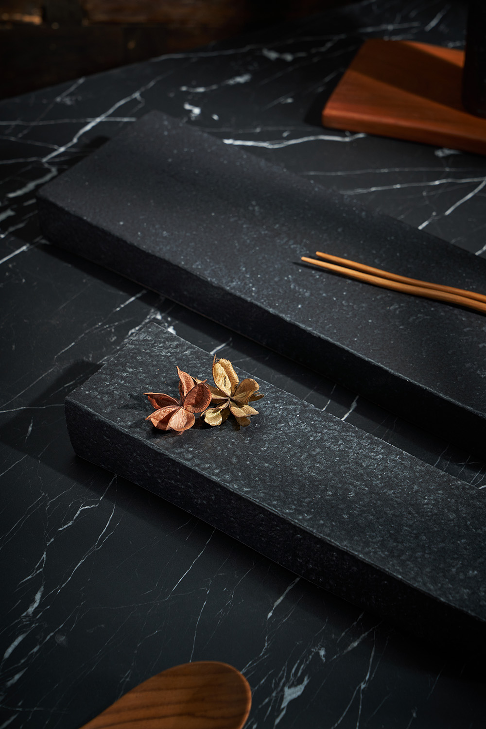 곽경태 작가 ( 토루 ) ' 스톤 통굽 직사각 접시 '직사각 형태의 통굽 디자인 세련되고 고급스러운 흑유 라인업 초밥, 롤, 수육 등등 다양한 요리과일, 샐러드 등 포인트 플레이팅 가능 |