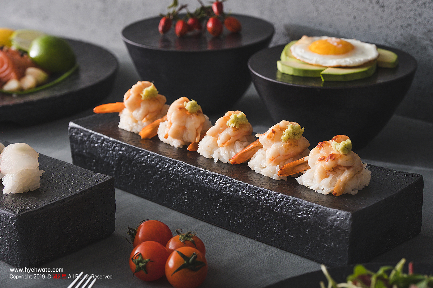 초밥, 롤, 수육 등등 다양한 요리과일, 샐러드 등 포인트 플레이팅 가능 |