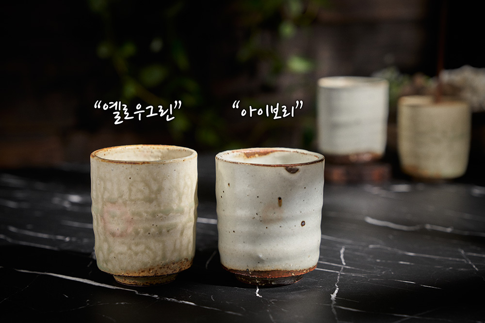 유약요변으로 인하여 색상별 텍스쳐의 변화가 있습니다. ( 좌 옐로우그린 / 우 아이보리 ) |