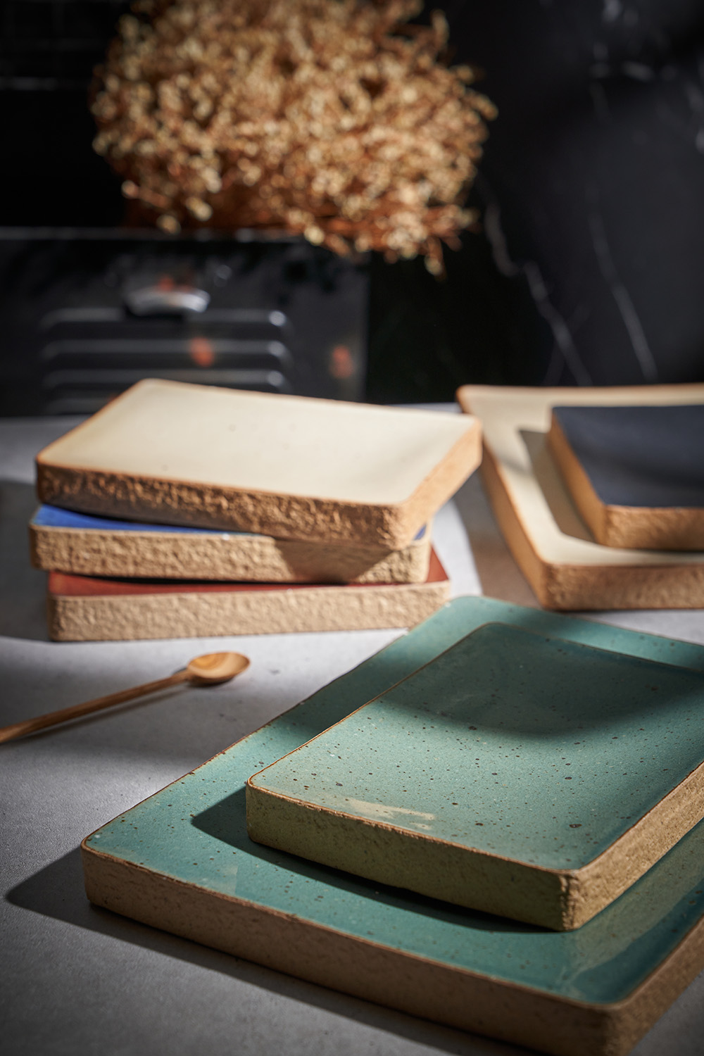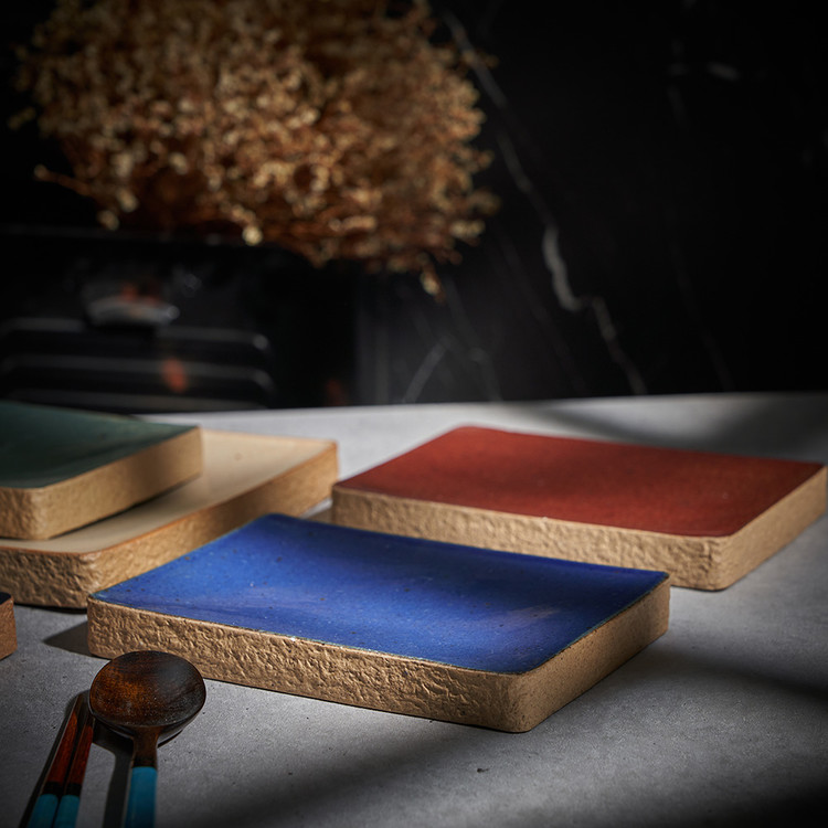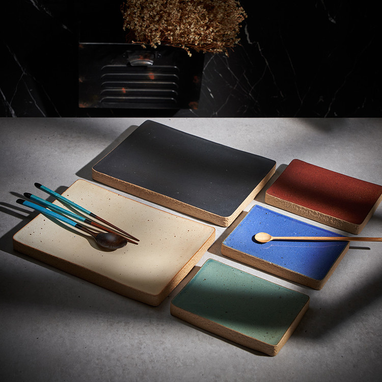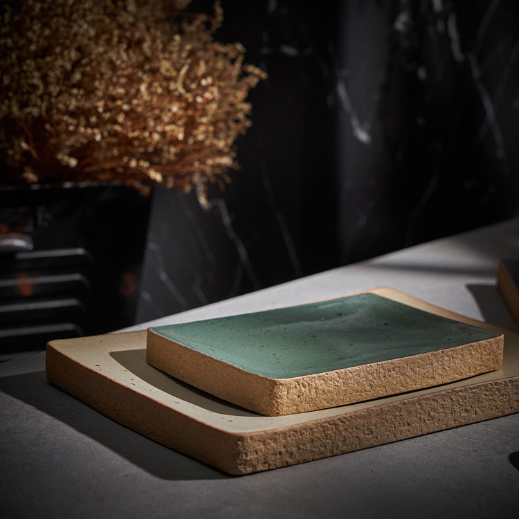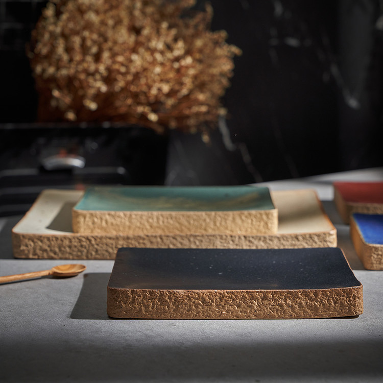 한미정 작가 ( 토판 ) ' 돌세팅 직사각 접시 '옆면 돌과 같은 재질 포인트 테두리 심플한 직사각 형태의 굽접시 찬기, 메인요리디저트 플레이트 |