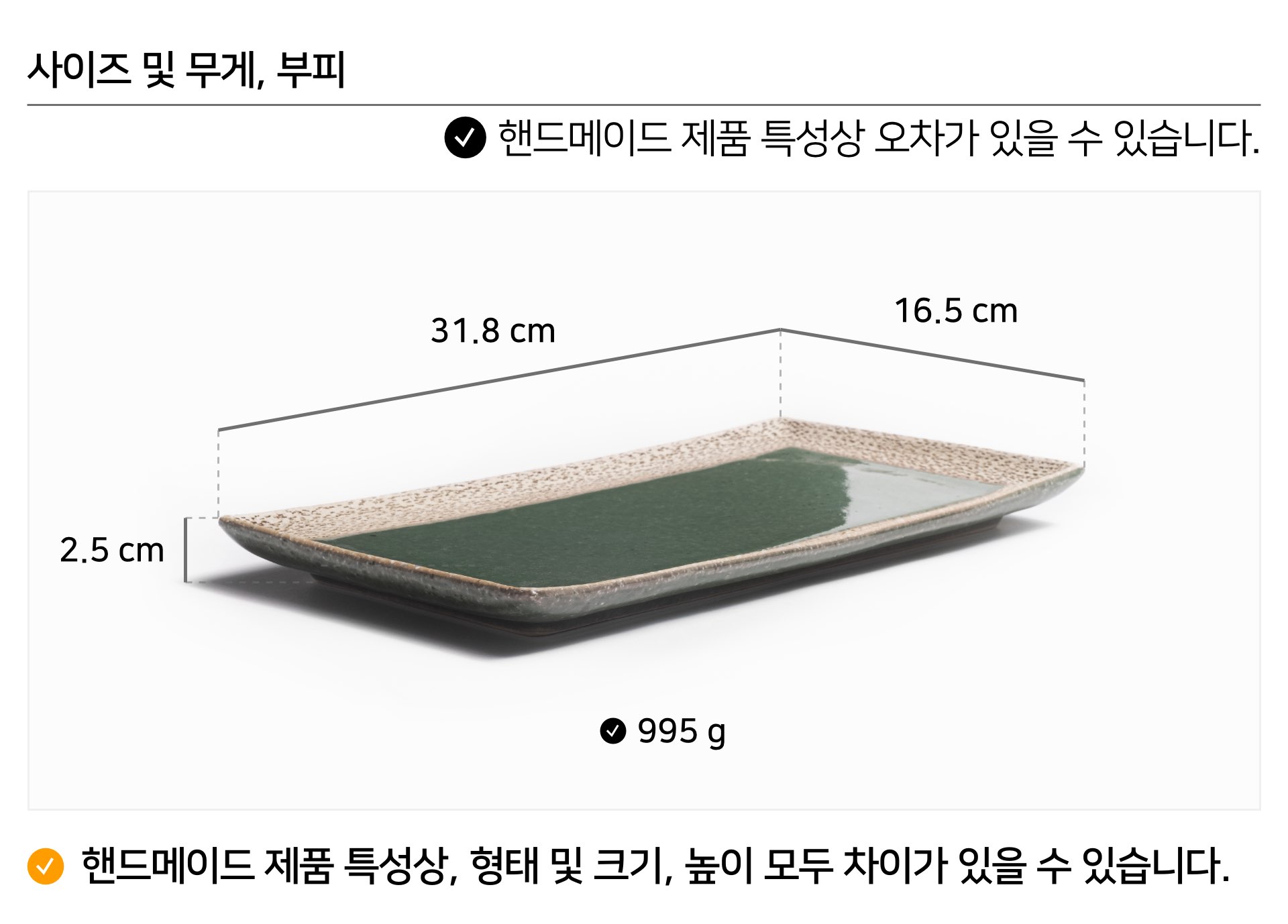 | 핸드메이드 도자기 그릇은 일반적인 공산품과 다릅니다. 가마의 분위기, 매번 달라지는 흙의 속성, 유약의 미세한 비율등 셀 수 없는 많은 요소로 인하여 끊임없이 요변이 일어나는 것이 핸드메이드 도자기 입니다. 상세 페이지와 다른 색상톤, 철분점과 돌기, 기포자국, 물레 형성자국, 가마에 닿는 바닥면의 흠집, 색배임 등등 핸드메이드 그릇 고유의 특징에 대하여 민감하신 분은 구매전 다시 한 번 고려하여 주시기 바랍니다. 온라인 쇼핑몰 특성상 사진이 본래의 제품과 100% 똑같이 나온다고 말씀드릴 순 없습니다. 항상 실제 제품과 같아 보이도록 최선을 다하고 있지만, 촬영 당시의 한 두개의 모델로 촬영된 제품과 꾸준히 생산되며 재입고되는 제품들은 요변에 따라 차이점이 날 수 밖에 없음을 이해해 주시기 바랍니다. 또한, 제품을 검색하는 모니터, 핸드폰의 종류에 따라서도 색상의 차이가 달라지니 이 점 참고하시기 바랍니다. |