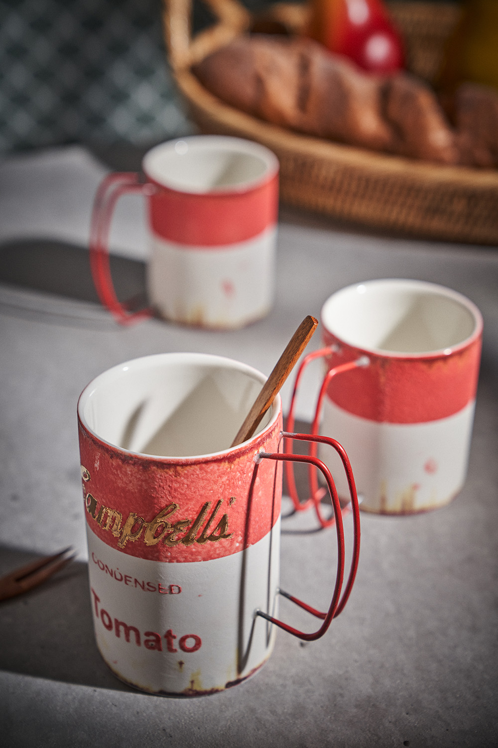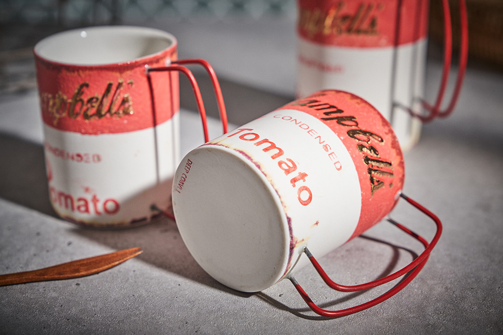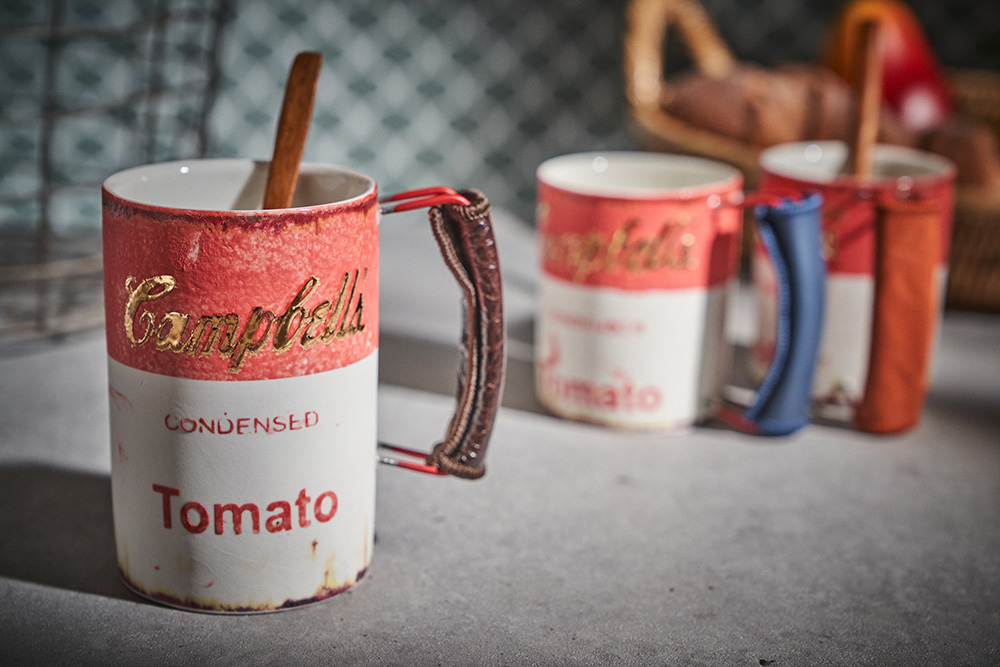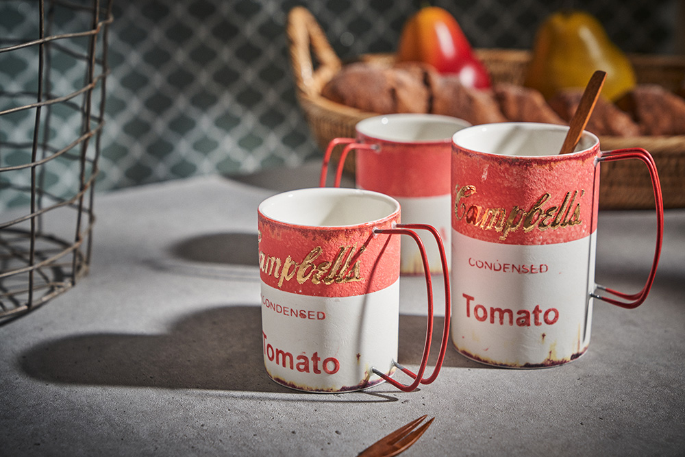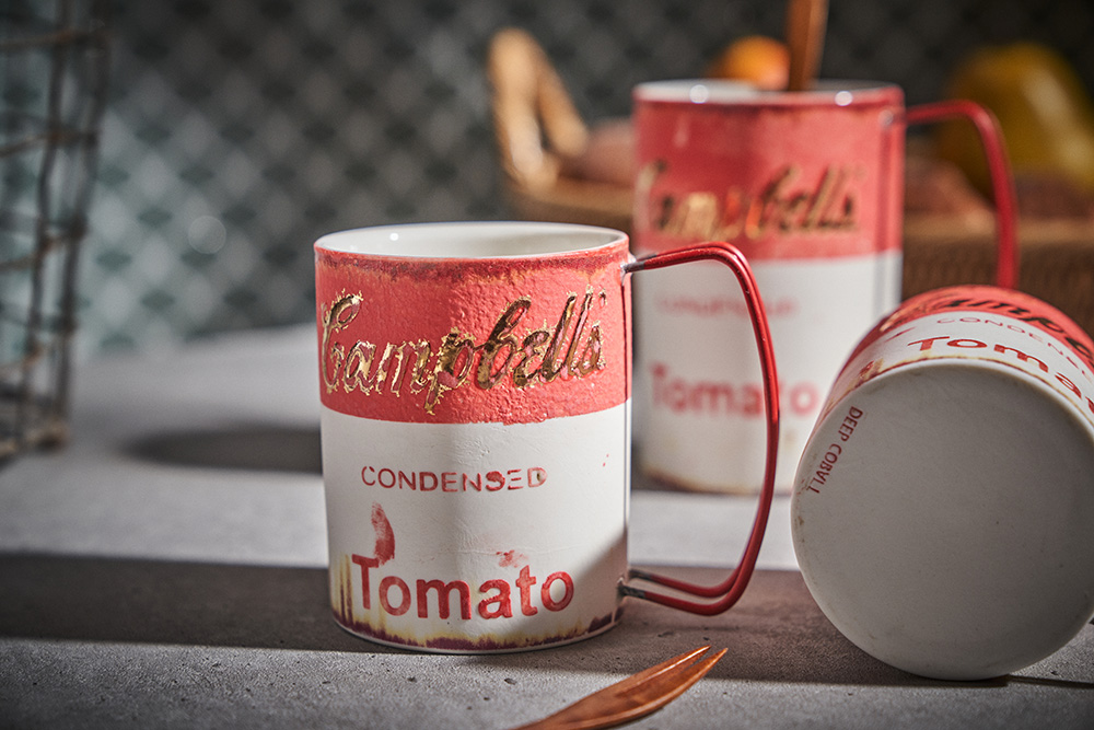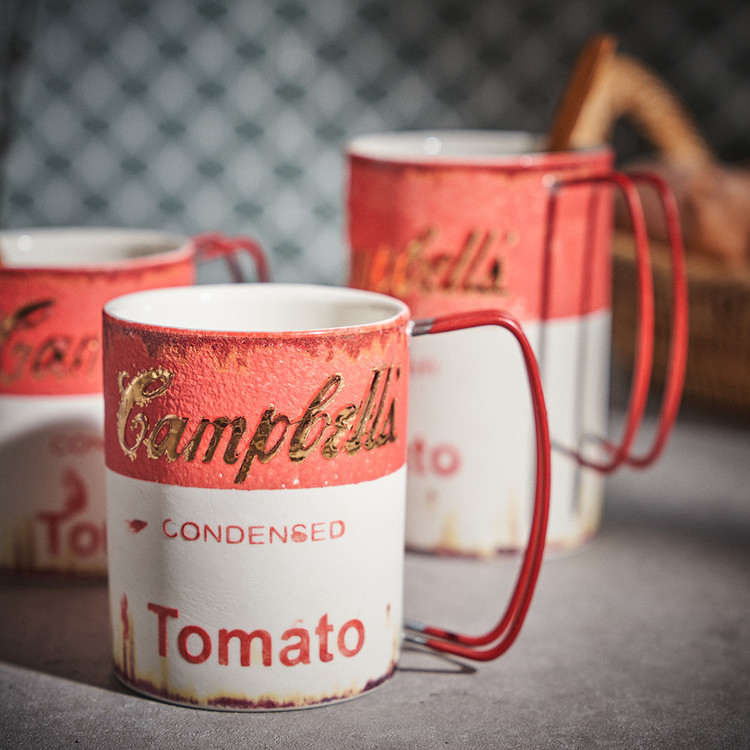 현상화 작가 ( 딥코발트 ) ' Campbells Tomato '빈티지한 느낌의 레트로 머그 디자인 시선을 잡아 끄는 레드 포인트