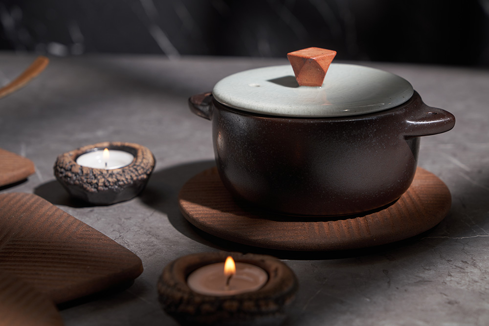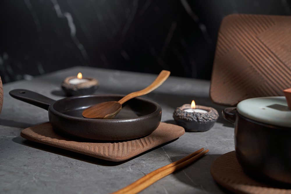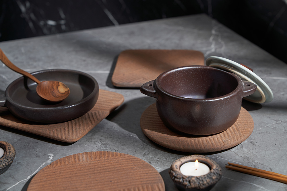 내열성이 가장 우수한 경남 산청지역의 내열 흙만을 고집하며, 자체개발한 자연유래 내열유약을 입혀 초벌부터 재벌까지 고온 소성(1250도)하여 내열성이 뛰어납니다.