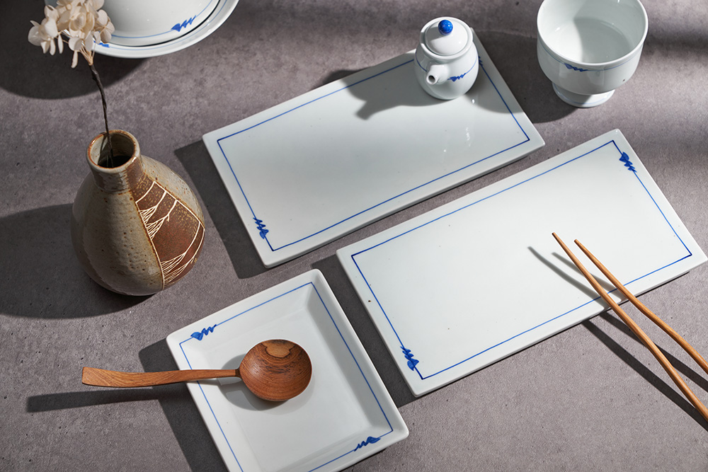 오규영 작가 ( 규담 ) ' 블루비 직사각 매트 접시 '네추럴한 라인의 낮은 굽 접시 매트한 판형의 세련된 직사각 형태 메인요리, 생선접시생활속, 다양한 일반식의 감각적인 플레이팅 |
