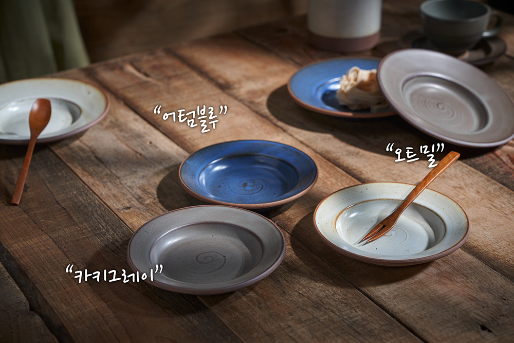 | 색상 가마에서 제작될 때 마다, 가마 분위기, 제작시 사용된 흙의 종류, 유약의 미세한 조합비율등의 차이로 인하여 색상톤의 변화가 있을 수 있습니다. 오트밀 어텀블루 카키그레이 |