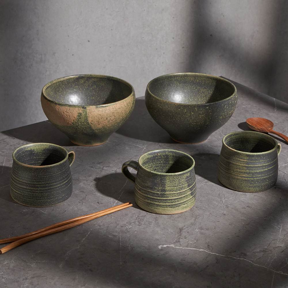 올리브 시리즈는 가마 분위기에 따라 다채롭게 철분 요변이 일어나며, 이러한 유약 요변은 시리즈 자체의 멋을 나타냅니다. |