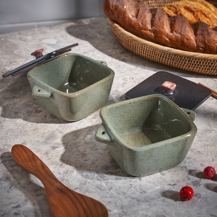 함 웅 작가 ( 토미153 ) ' 쑥색 미니 정사각 뚝배기 '유니크한 색상 배합 특이한 유광 내열자기 디자인 개성있는 정사각 형태의 아담한 뚝배기 계란찜, 1인 또는 소량 국, 찌개 등 추천 |