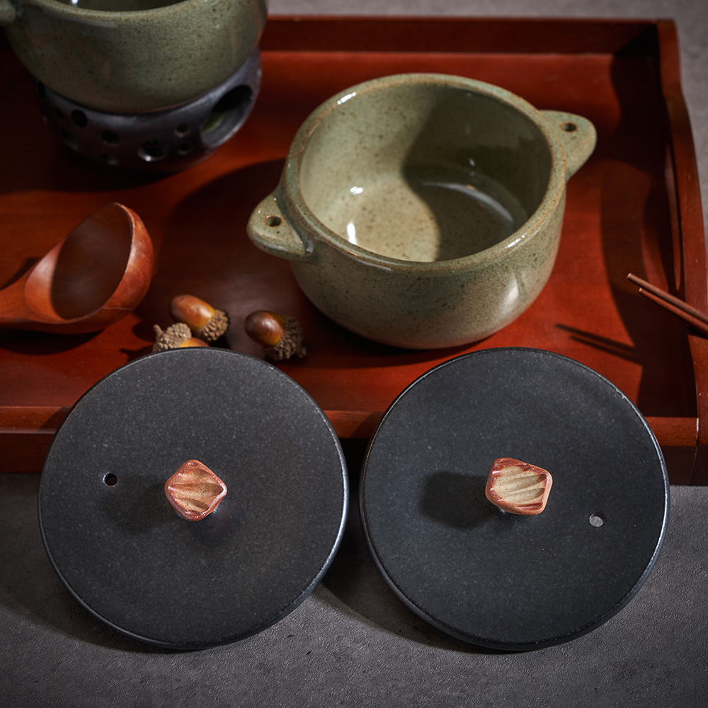 내열그릇의 뚜껑 손잡이 부분은 소금으로 색을 내어 미끄러지지 않고 열이 전도되지 않아 집기에 안전합니다. 형태는 동일 제품이라도 각기 달라질 수 있습니다. |