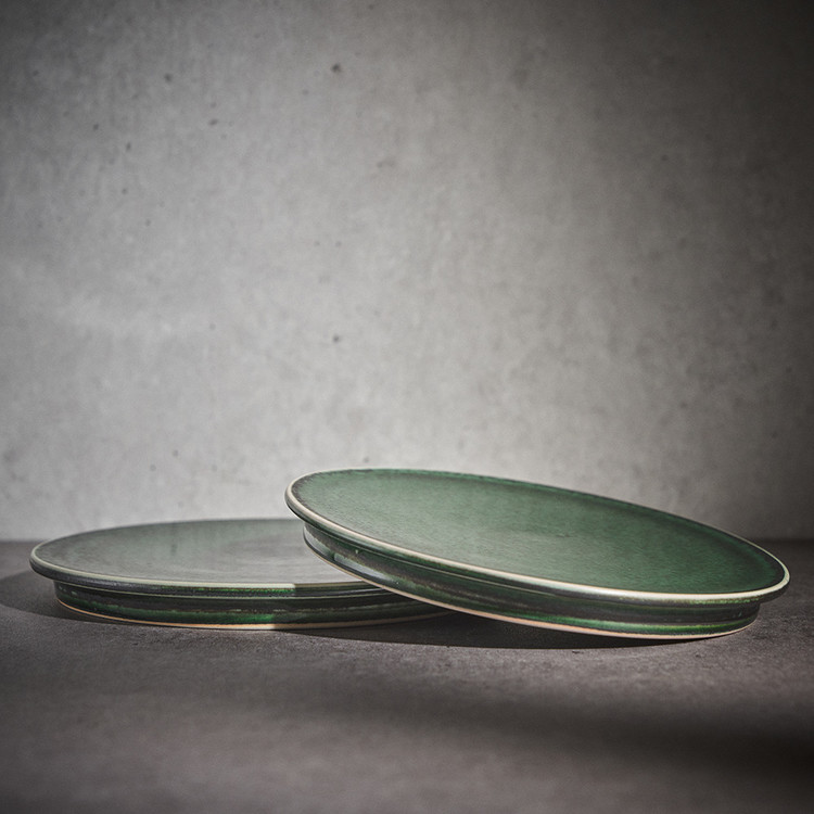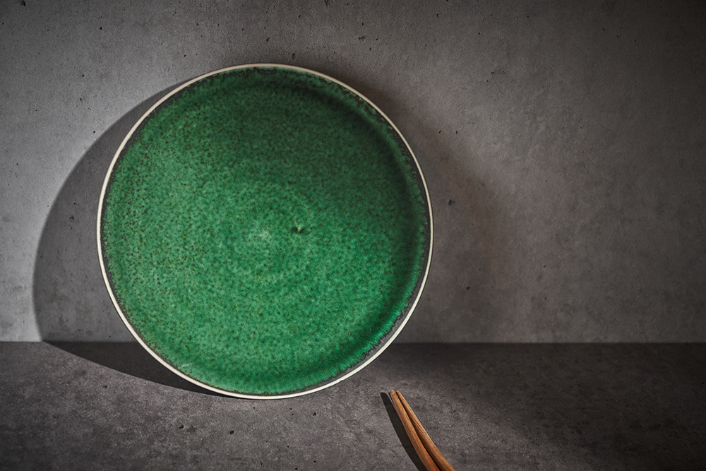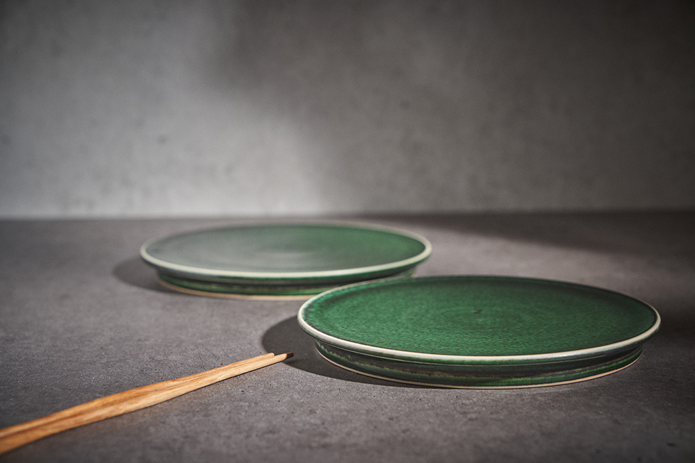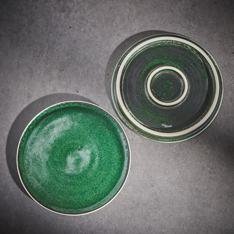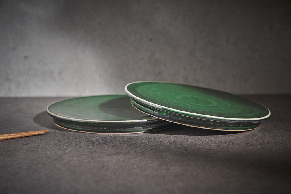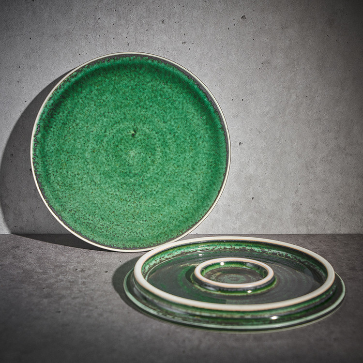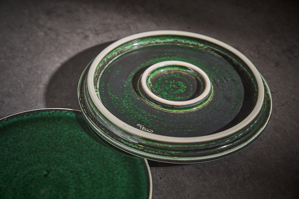 곽경태 작가 ( 토루 ) ' 이중 굽 원판 접시 '그린 색상 단독 하단 2중 굽에서 오는 안정감