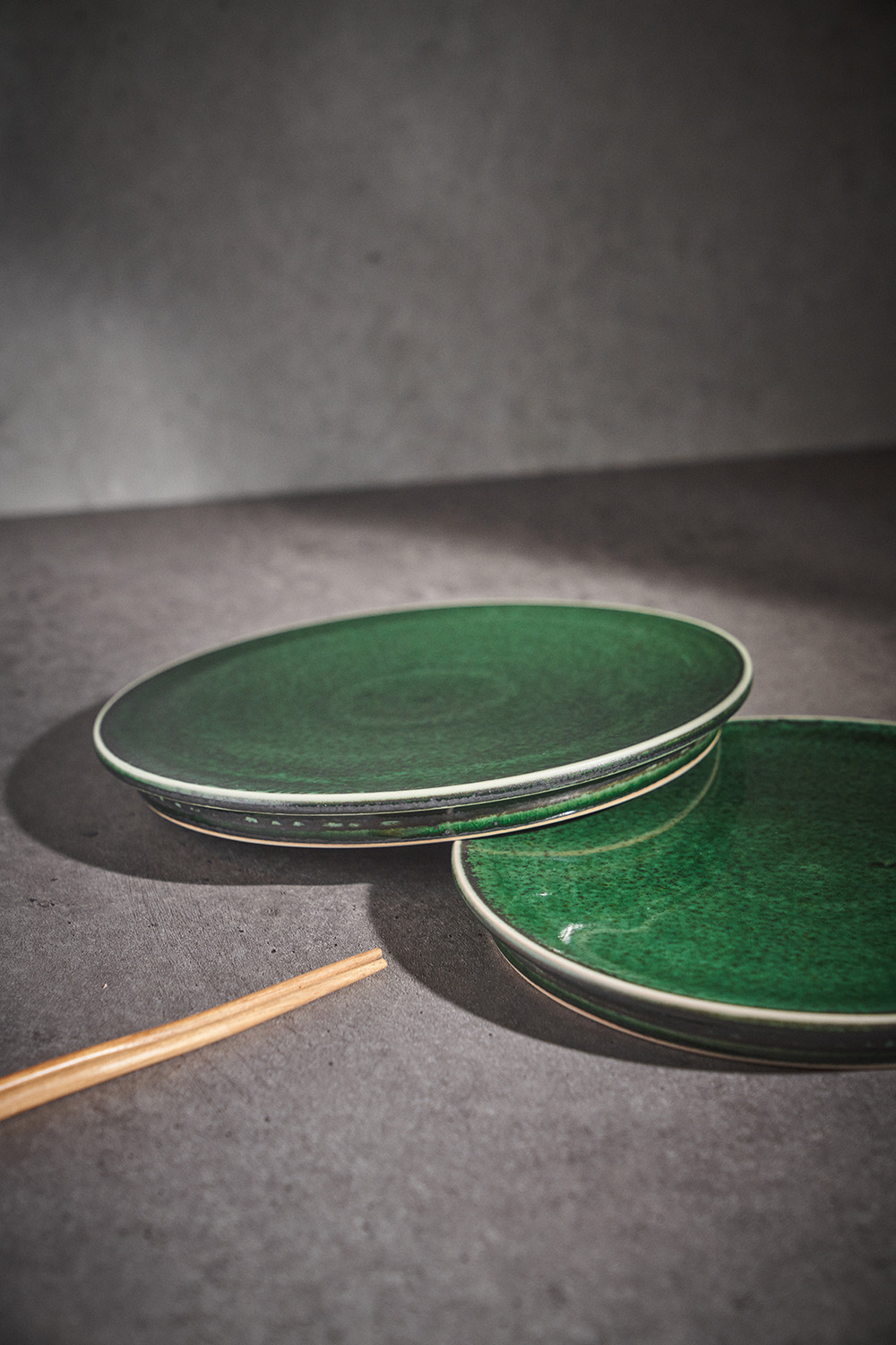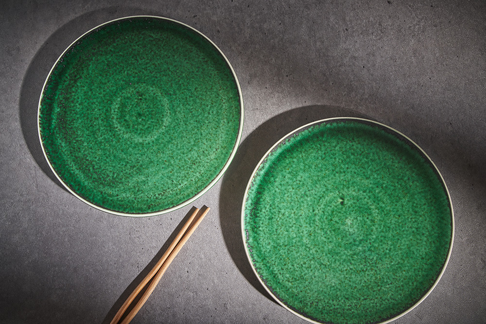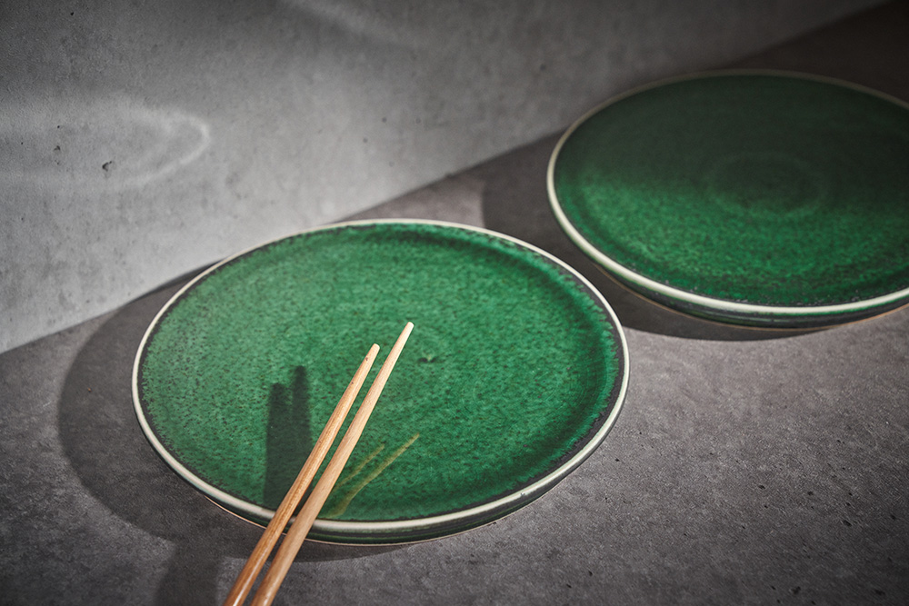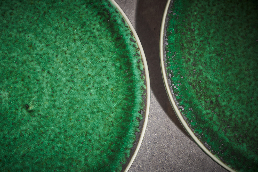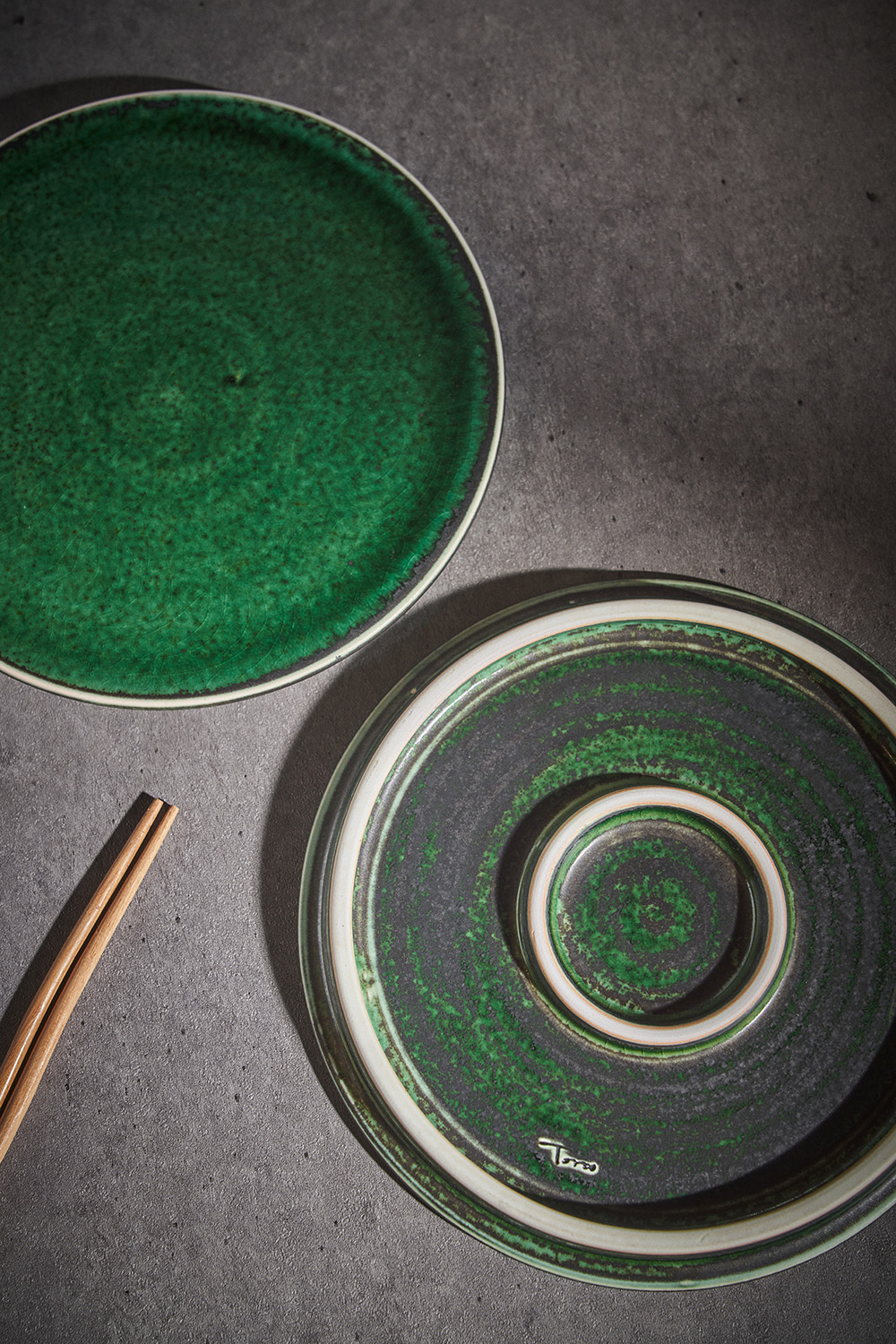 곽경태 작가 ( 토루 ) ' 이중 굽 원판 접시 '그린 색상 단독 하단 2중 굽에서 오는 안정감