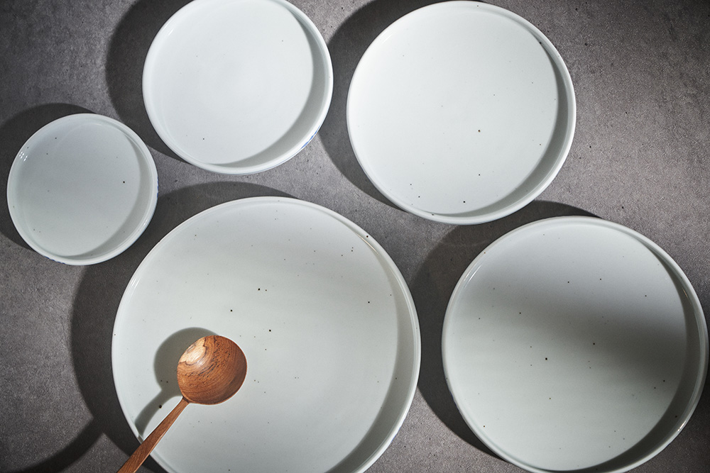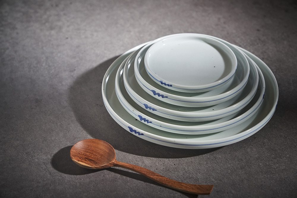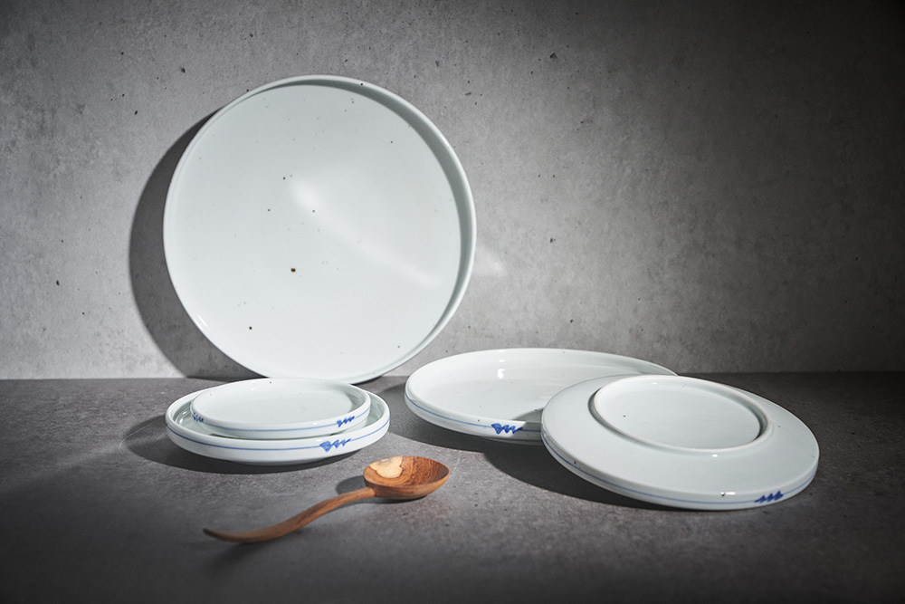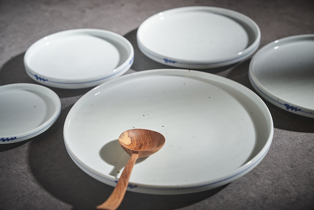 오규영 작가 ( 규담 ) ' 블루비 보름 플랫 접시 '심플한 원형의 낮은 굽 접시 다양한 사이즈와 높은 활용도