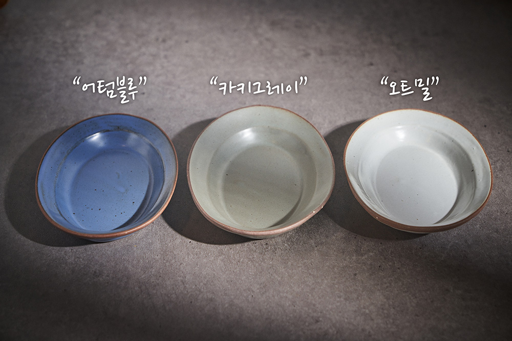| 색상 가마에서 제작될 때 마다, 가마 분위기, 제작시 사용된 흙의 종류, 유약의 미세한 조합비율등의 차이로 인하여 색상톤의 변화가 있을 수 있습니다. 오트밀 어텀블루 카키그레이 다채로운 유약요변 및 철분점은 가마가텅빈날 제품의 특징입니다. 색상톤에 민감하신 분은 미리 문의 주신 후 구매해 주시기 바랍니다. |