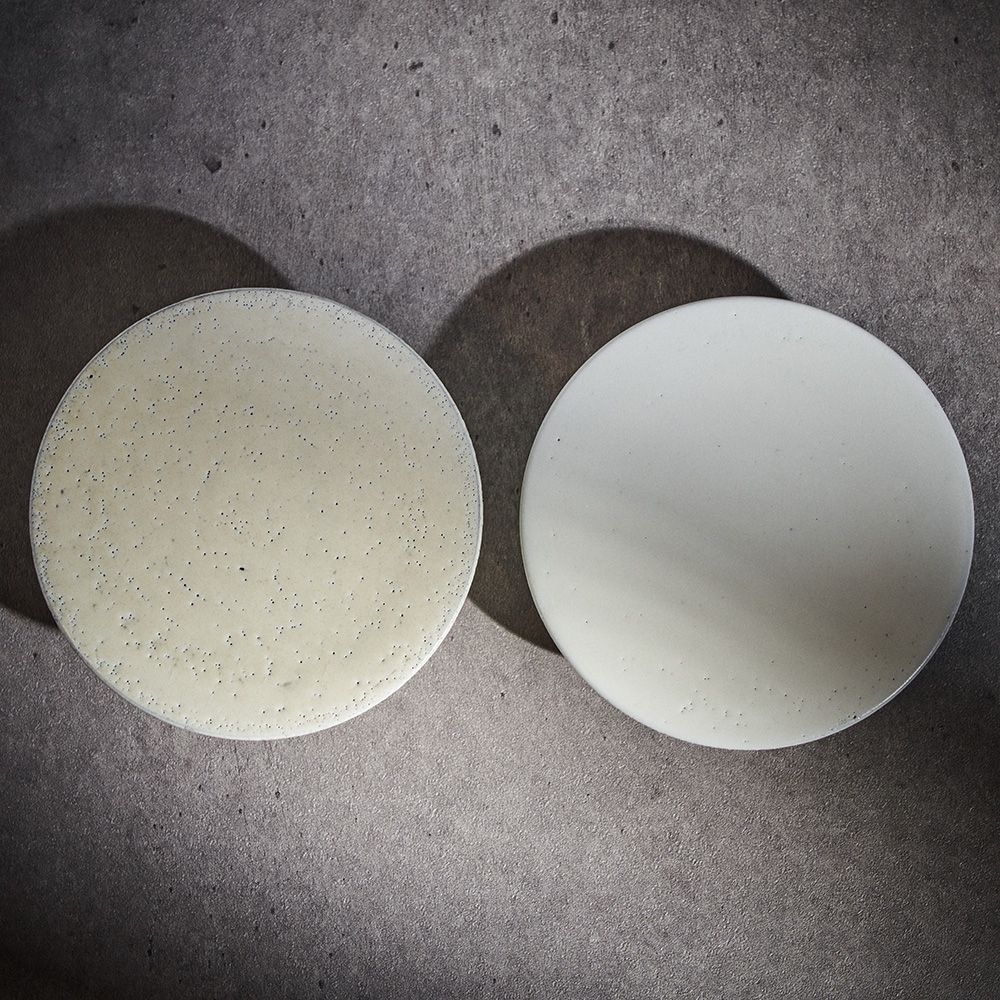 유약요변으로 인하여 색상별 텍스쳐의 변화가 있습니다. ( 좌 옐로우그린 / 우 아이보리 ) |