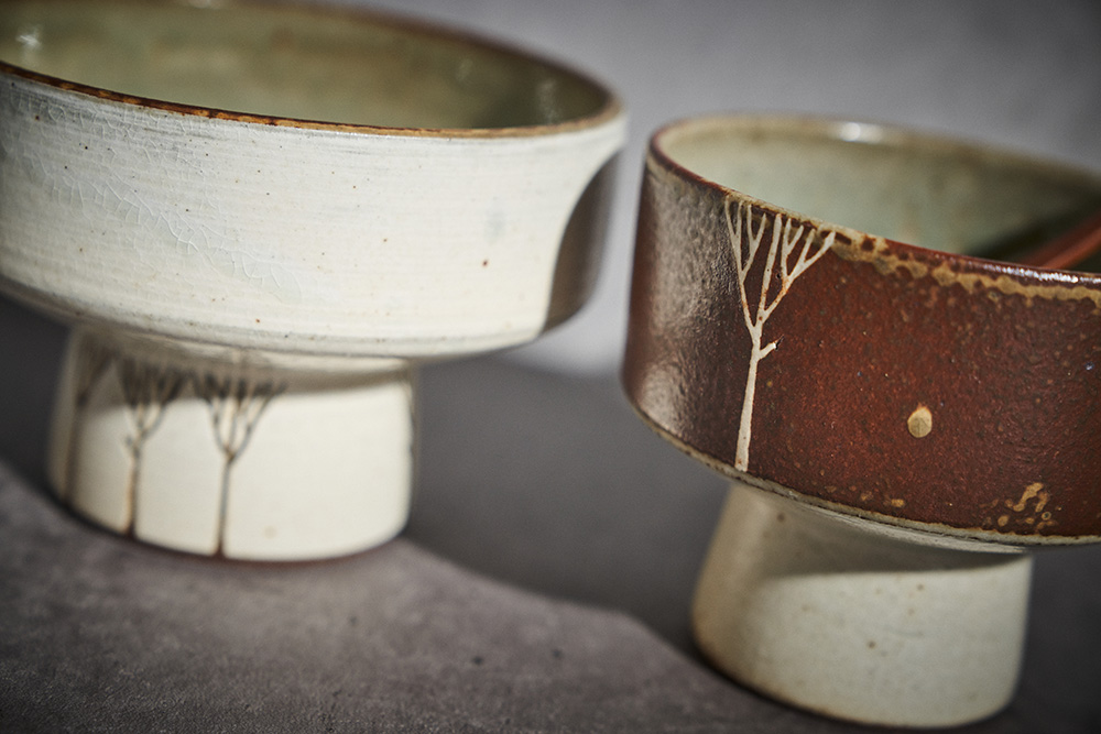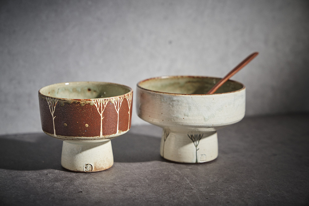 오규영 작가 ( 규담 ) ' 숲 디저트볼 '상감작업 특유의 분위기 높은 굽 포인트와 서정적인 디자인