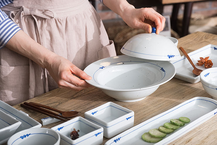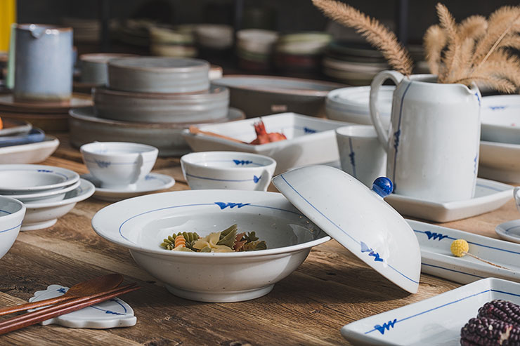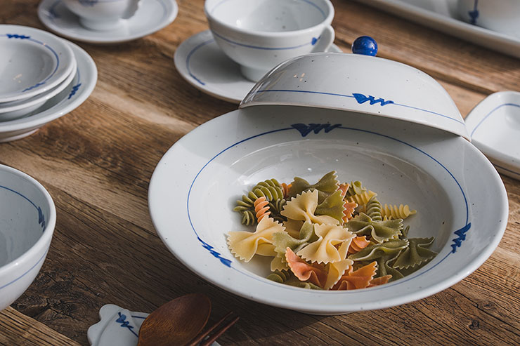 넓은 전을 가진 전통적인 파스타볼 디자인