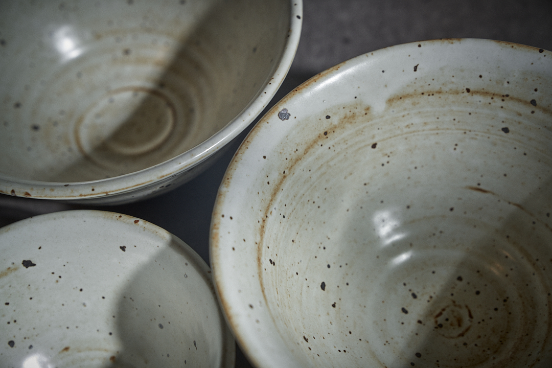 기포 및 철분 요변 제품 표면에 철분 및 유약 요변으로 인한 응고된 기포자국 및 철분점, 철분꽃이 피어있습니다. 철분점은 도자기 그릇의 가장 흔한 요변으로, 때가 묻거나 녹이 슨게 아닌 작가의 의도적인 표현방법 입니다. 혜화토 대부분의 제품은, 이러한 철분 요변을 적극적으로 표현한 제품들 입니다. |